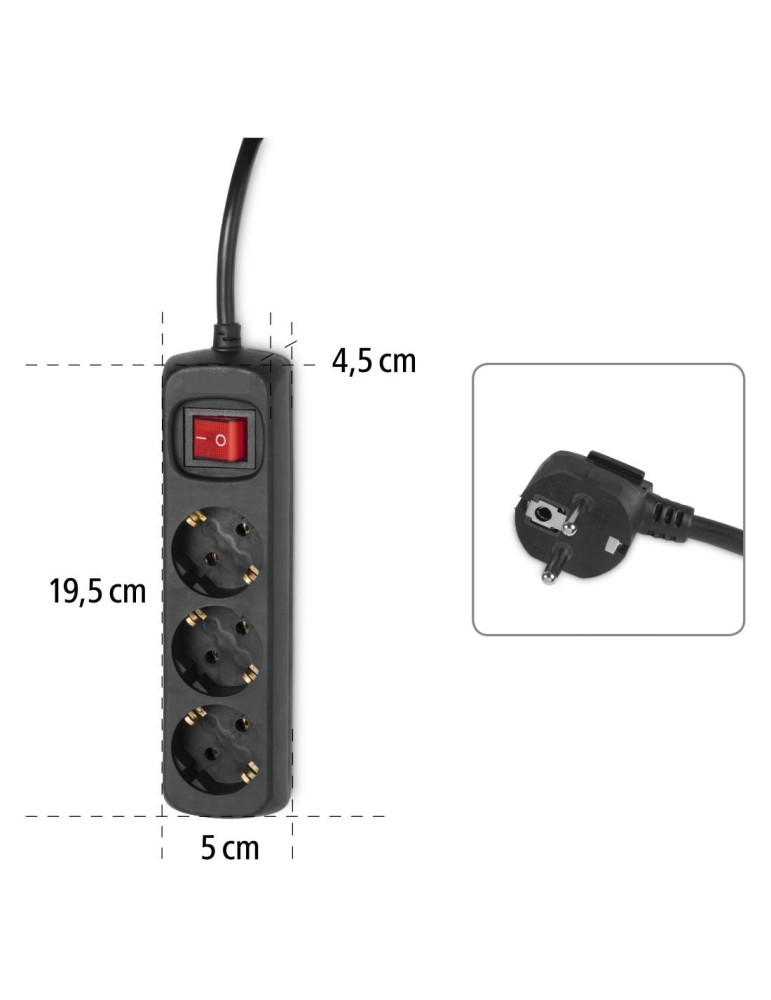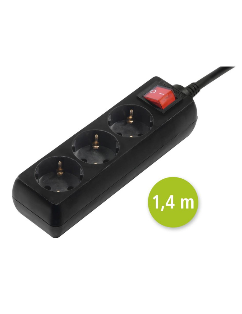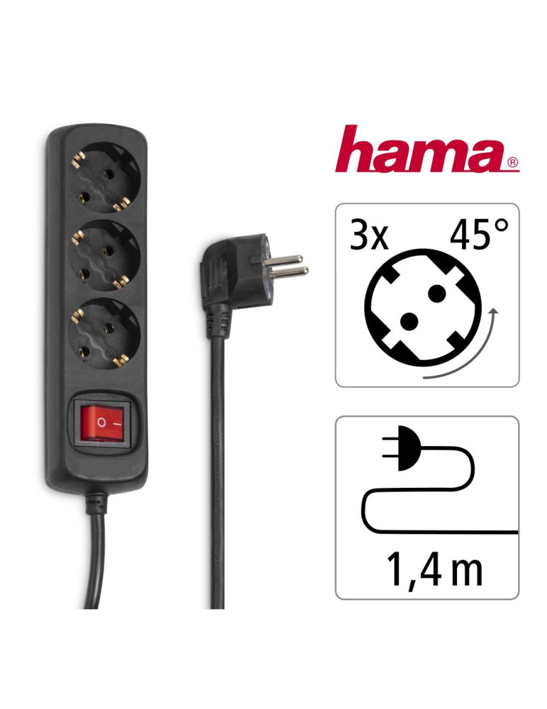 Разклонител HAMA 30392 3гнезда, 1.4м, черен с бутон вкл/изкл - 30392