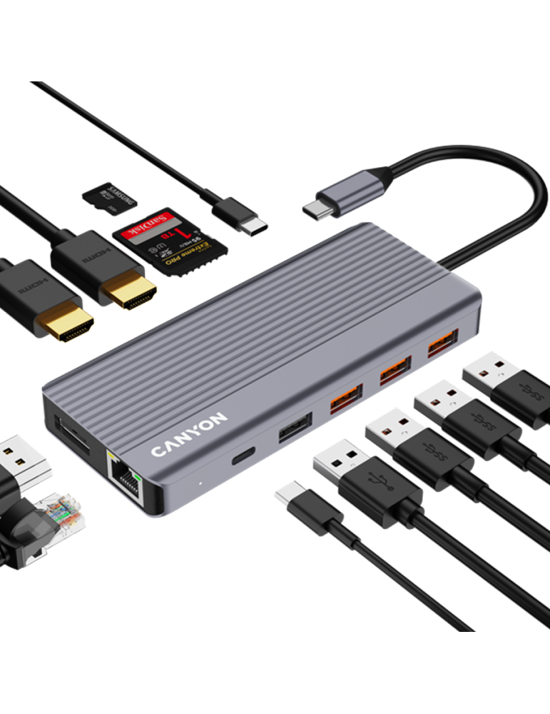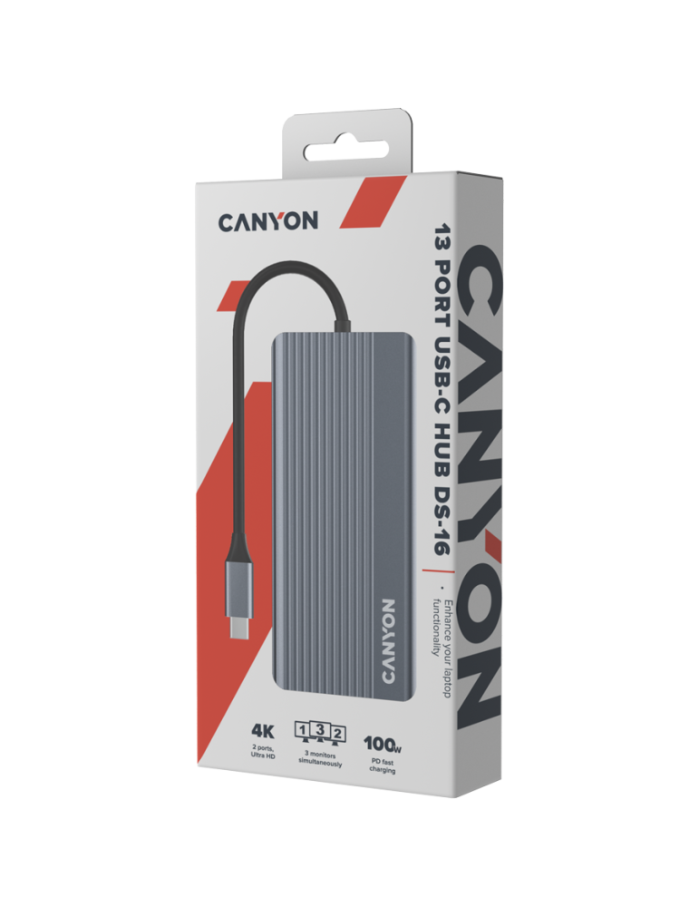 | Търговско име | CANYON hub DS-16 13in1 4k USB-C Grey |