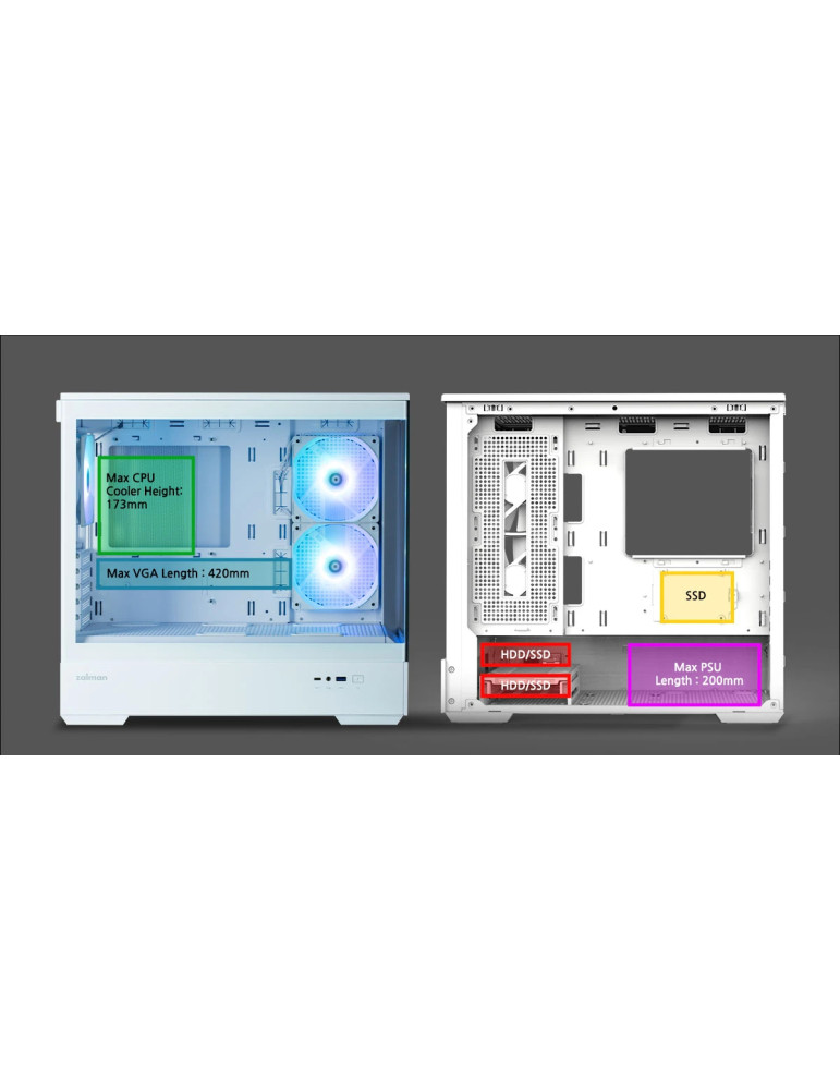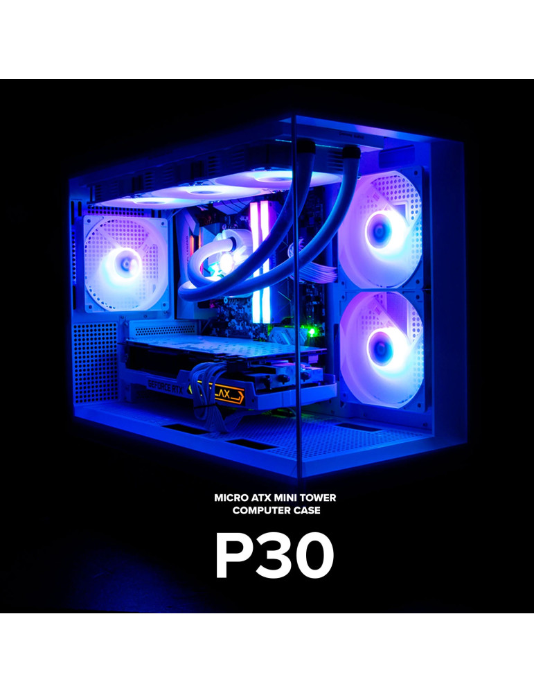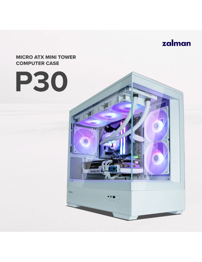 Кутия за компютър Zalman P30 White, mATX, aRGB, Tempered Glass - ZM-P30-WHITE
