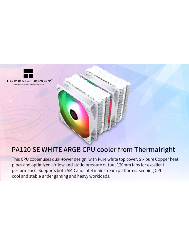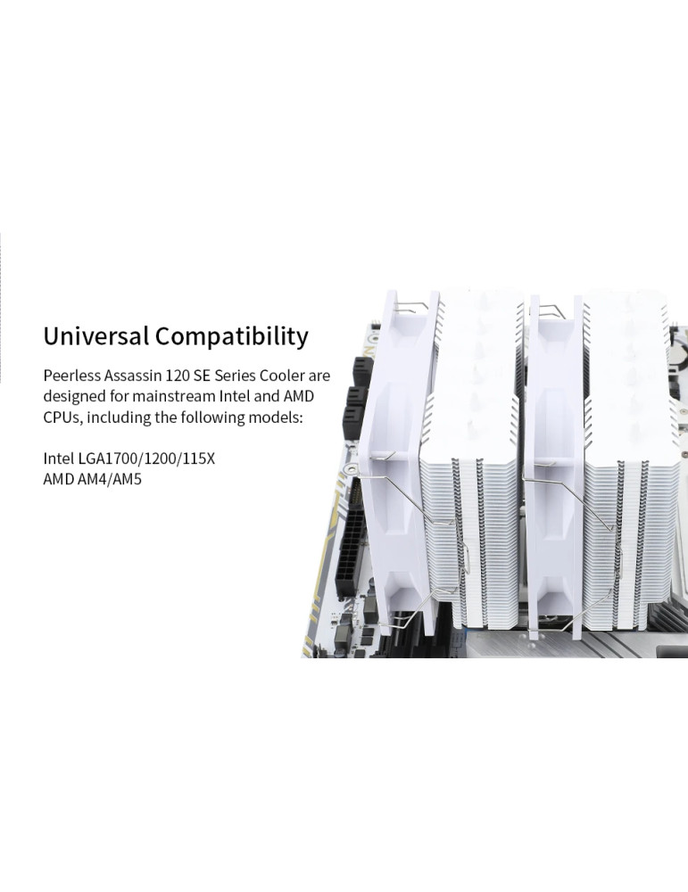 Охладител за процесор Thermalright Peerless Assassin 120 SE A-RGB White, Dual-Tower, LGA1851/LGA1700/AM5 - PEERLESS-ASSASSIN-120-SE-WH-ARGB