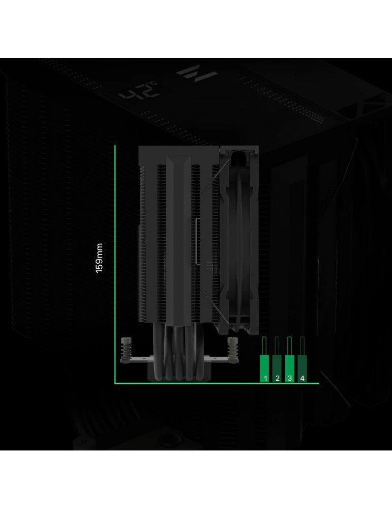 | ДОПЪЛНИТЕЛНИ | Anti-vibration Rubber Damper Black Coated Copper Heatpipes Live CPU Temperature Display Powerful 120mm Annular Fan Vibrant ARGB Lighting Effect Zalman AF120 Annular Fan with Shark Fin Blades |