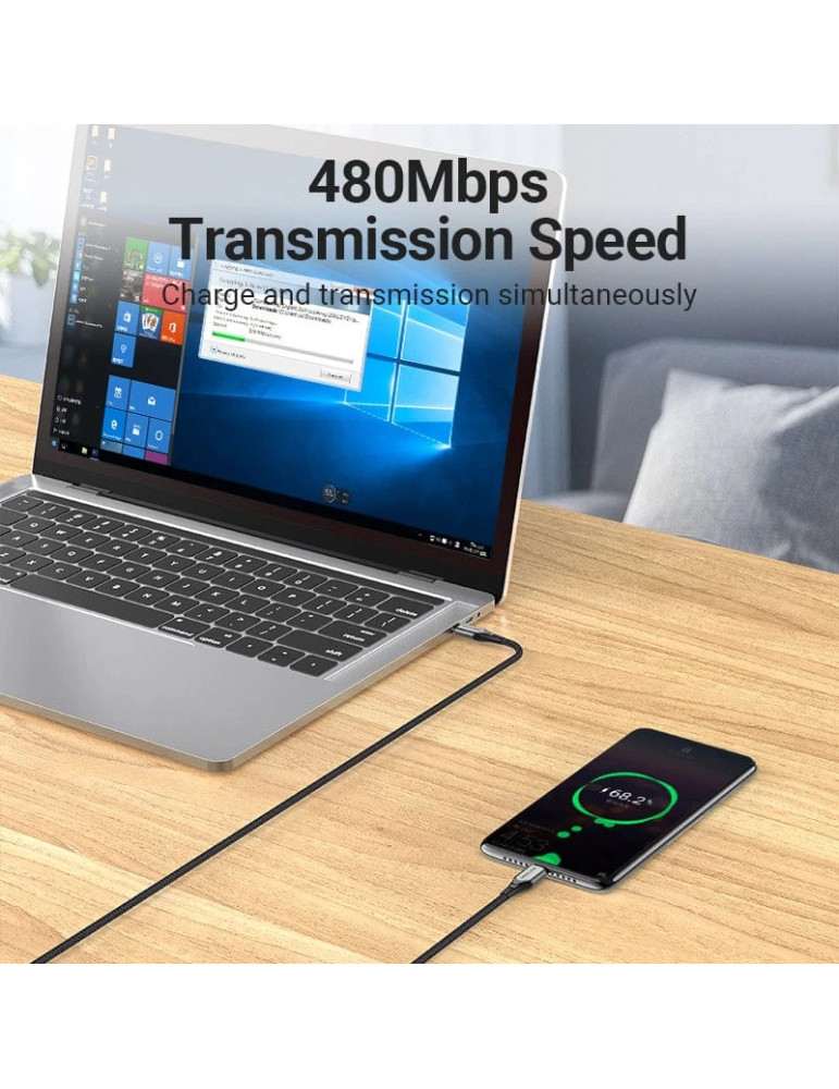 Кабел Vention USB 2.0 Type-C to Type-C - 2.0M Black 5A Fast Charge - TAEHH