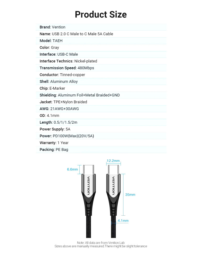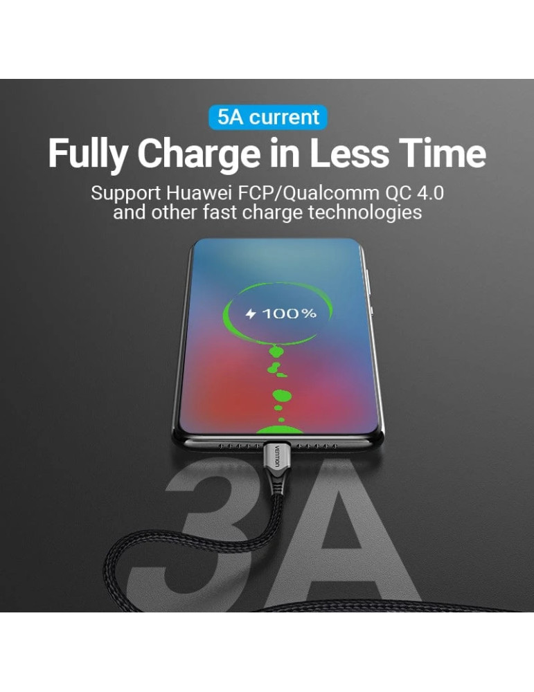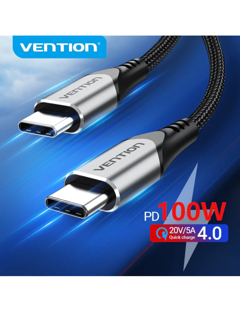 Кабел Vention USB 2.0 Type-C to Type-C - 1.0M Black 5A Fast Charge - TAEHF