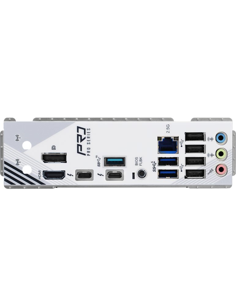 | Интерфейс | 2 Antenna Mounting Points, HDMI, DisplayPort 1.4, 2 Thunderbolt 4 Type-C Ports, USB 3.2 Gen2 Type-A Port, 2 USB 3.2 Gen1 Ports, 4 USB 2.0 Ports, RJ-45, BIOS Flashback Button, HD Audio Jacks: Line in / Front Speaker / Microphone |