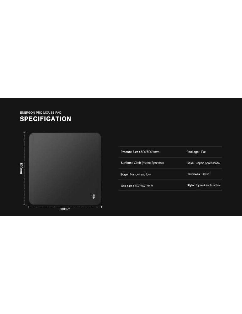 Професионален геймърски пад за мишка Lamzu Energon Pro, Japan Poron Base, 500 x 500 mm - LAMZU-ENERGON-PRO-BLK