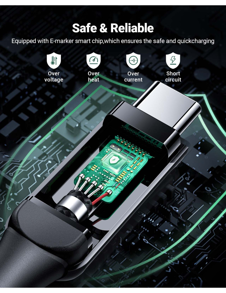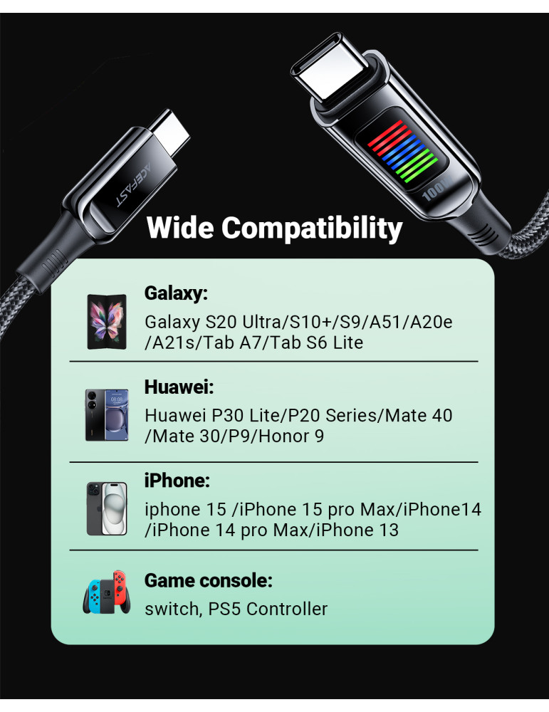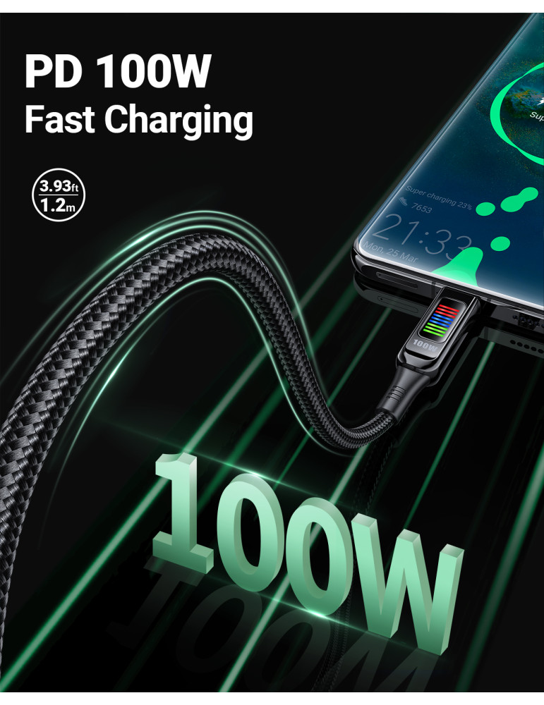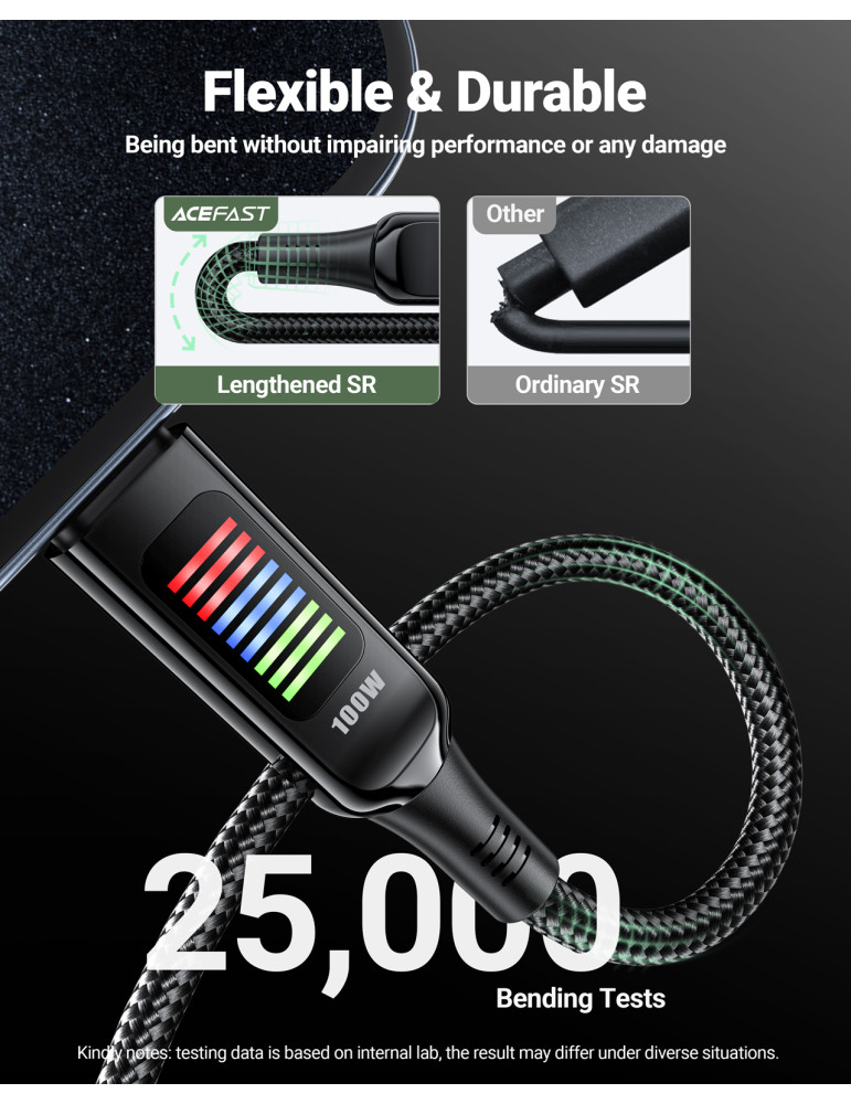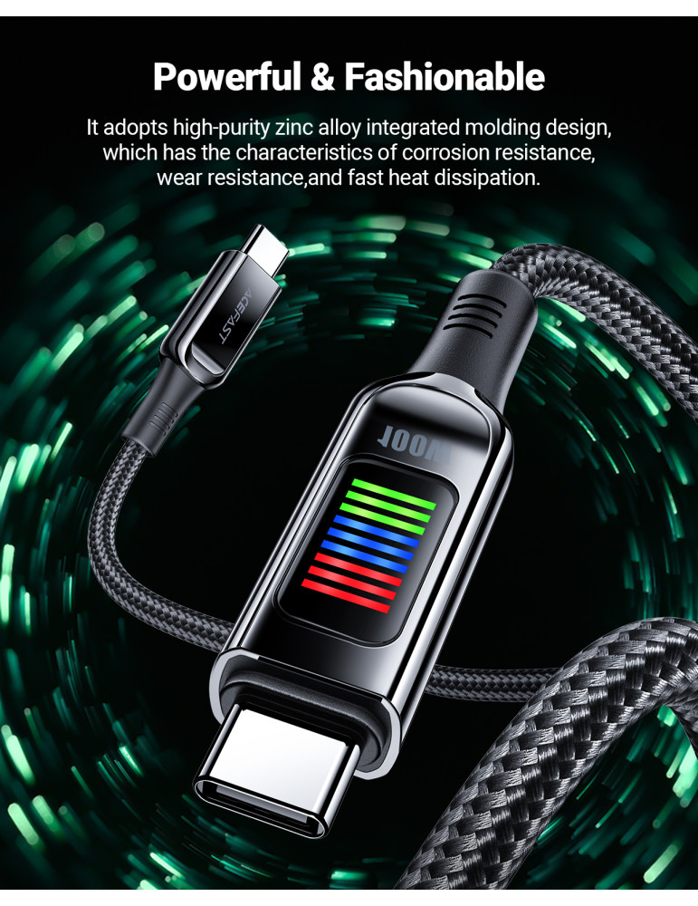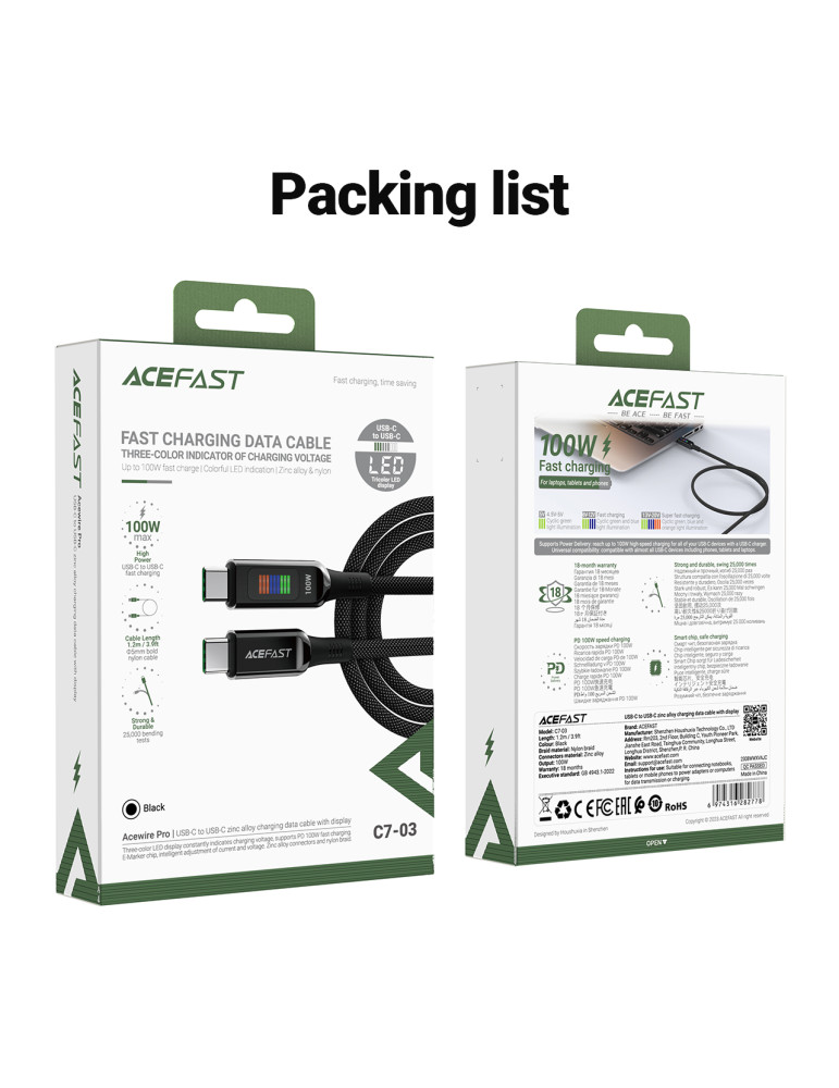Кабел Acefast USB-C to USB-C Cable 100W 1.2m with LED display - C7-03 - Black - ACEFAST-C7-03-BK