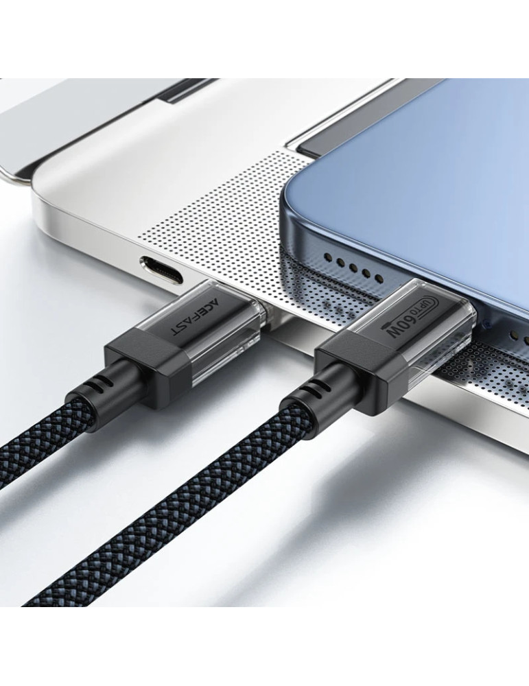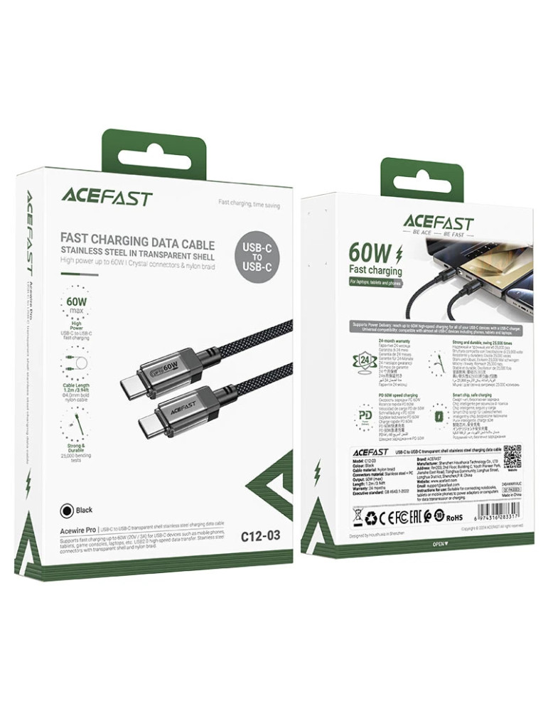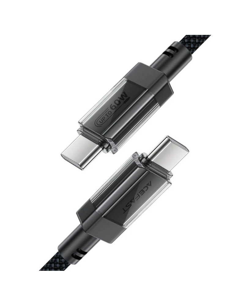 Кабел Acefast USB-C to USB-C Cable 60W Stainless steel in transparent shell 1.2m - C12-03 - Black - ACEFAST-C12-03-BK