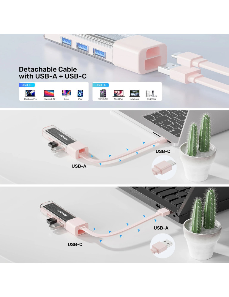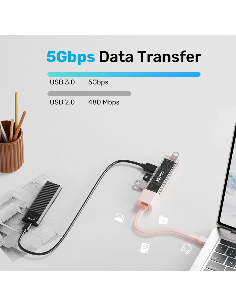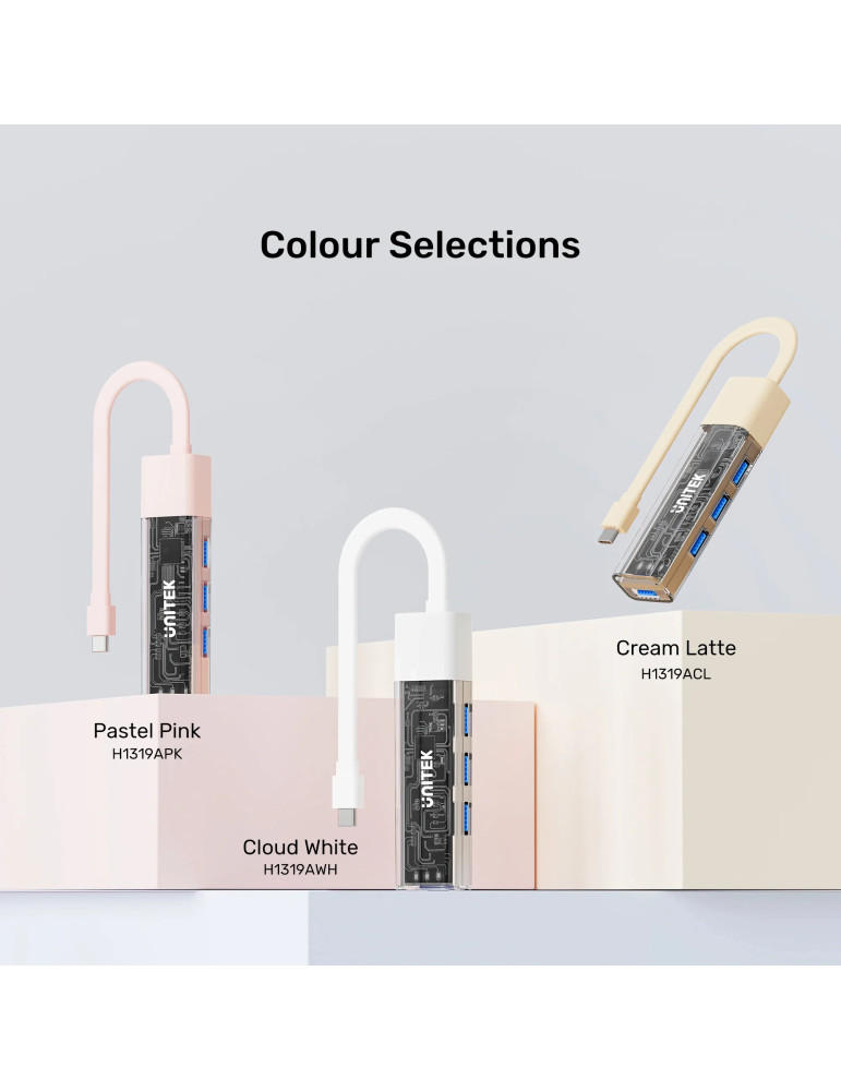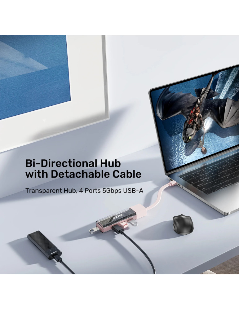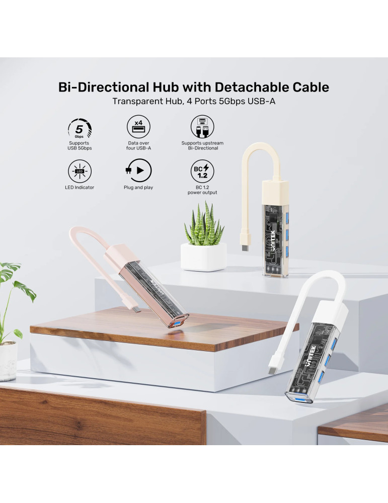 Хъб Unitek USB-C/USB-A 3.0 HUB 4 port, Bi-Directional, Detachable Cable, White - H1319AWH01