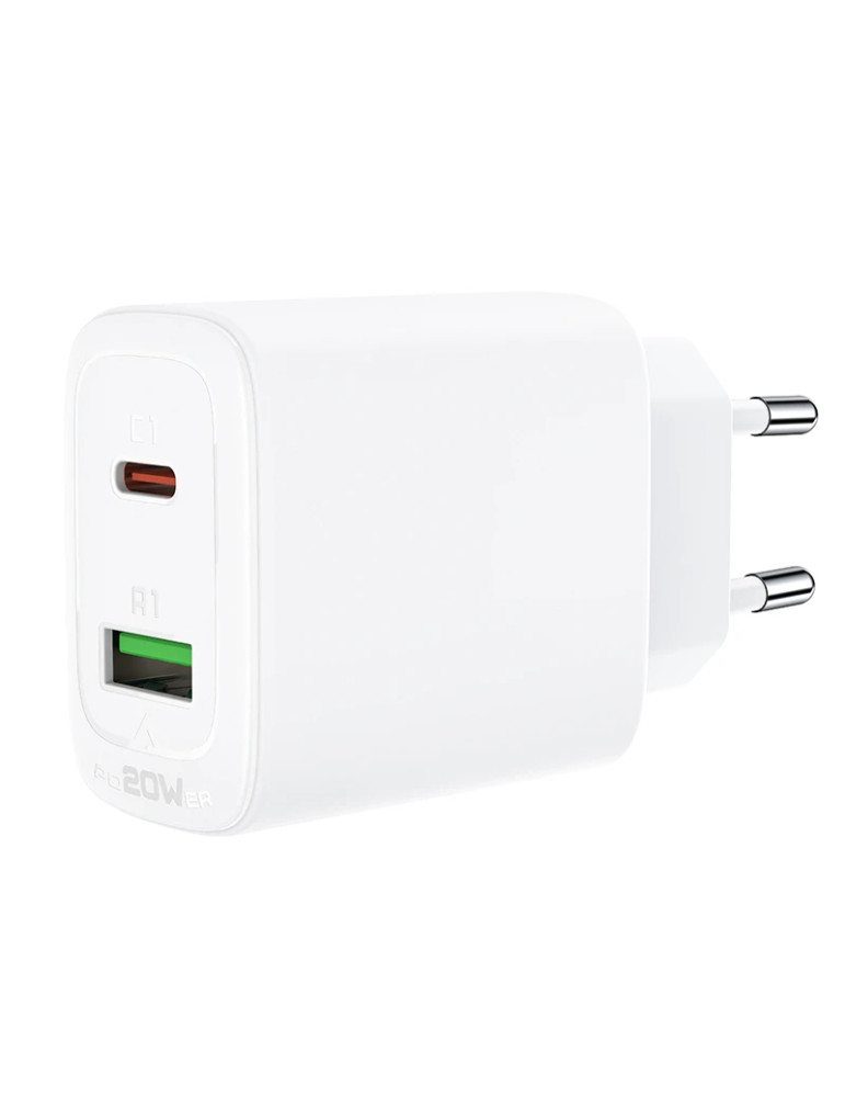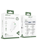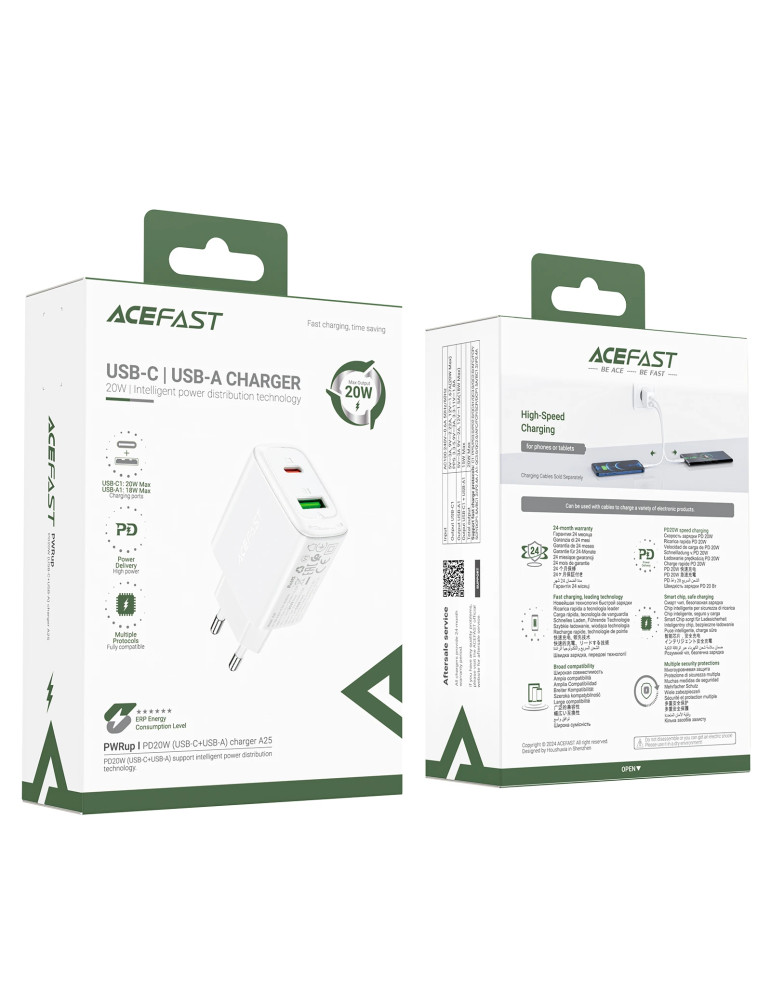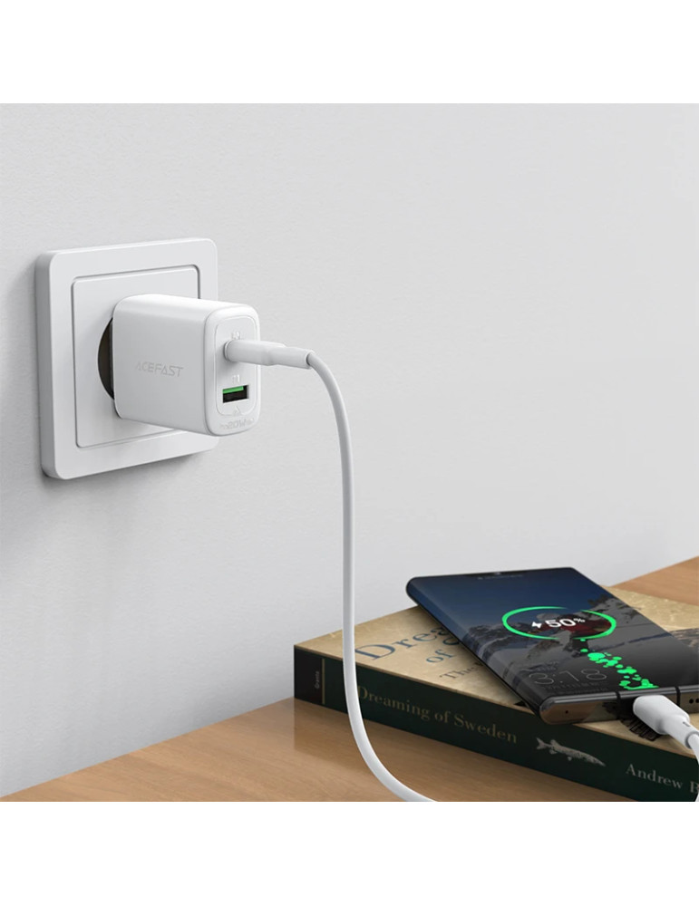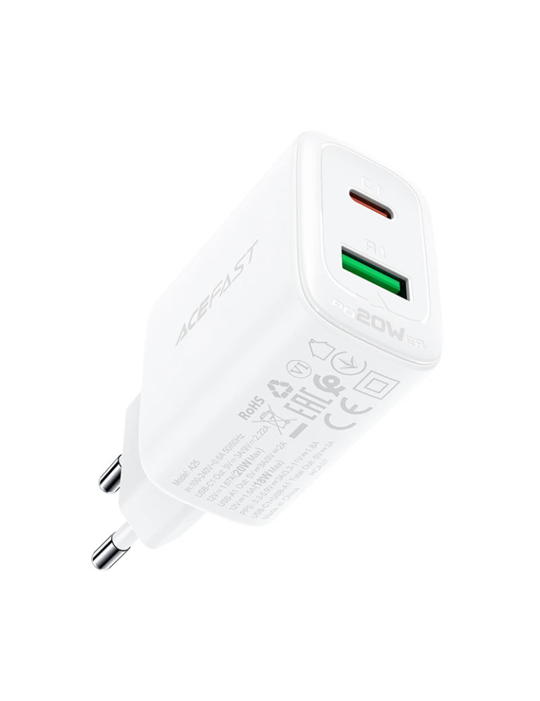 Универсално зарядно за стена Acefast Charger Wall GaN PD20W - A25 - USB-C x 1, USB-A x 1, White - ACEFAST-A25-WH
