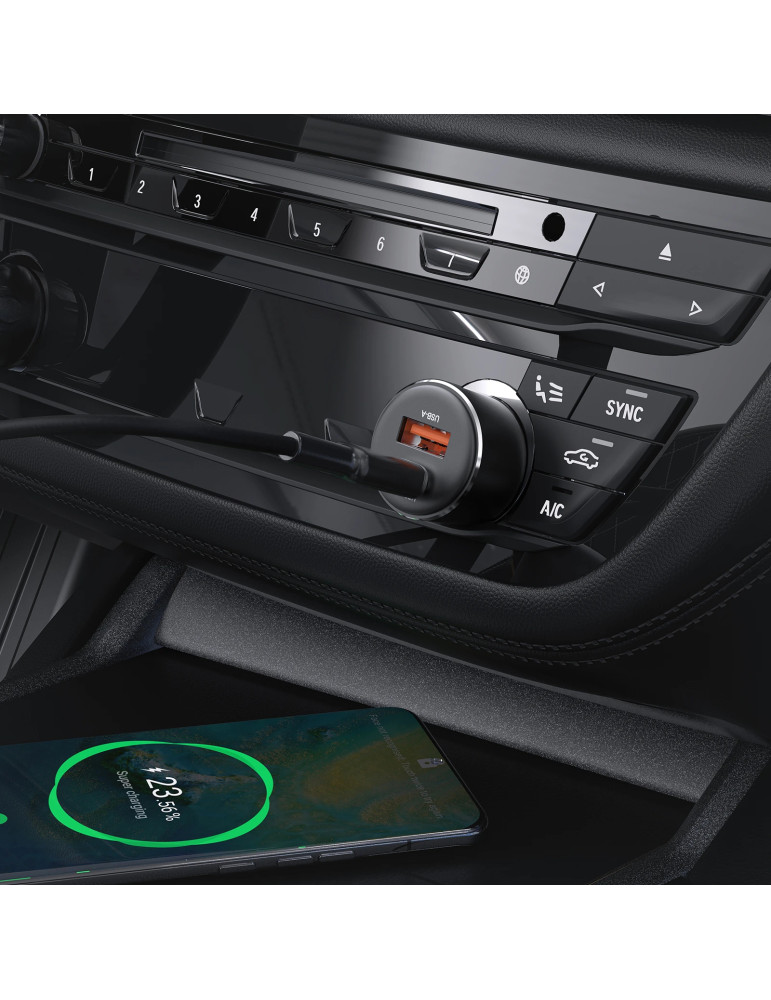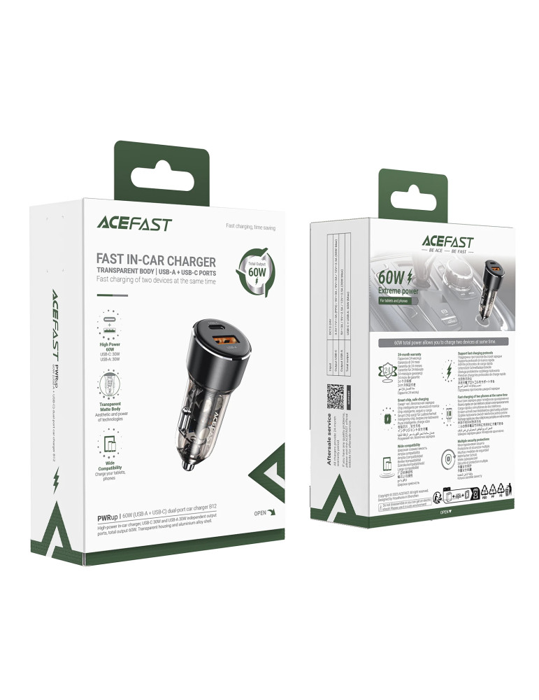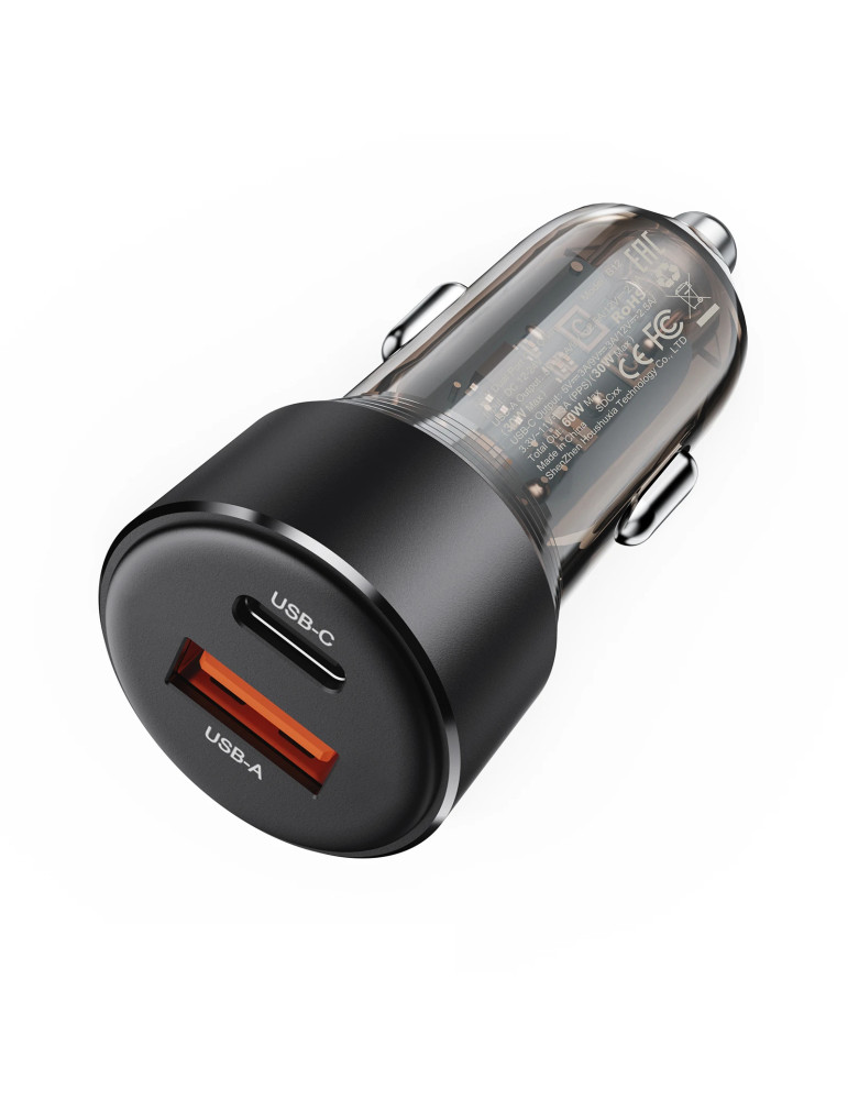Зарядно за кола Acefast Fast Charger Car PD3.0 60W - B12 - USB-C x 1, USB-A x 1, Black - ACEFAST-B12-BK