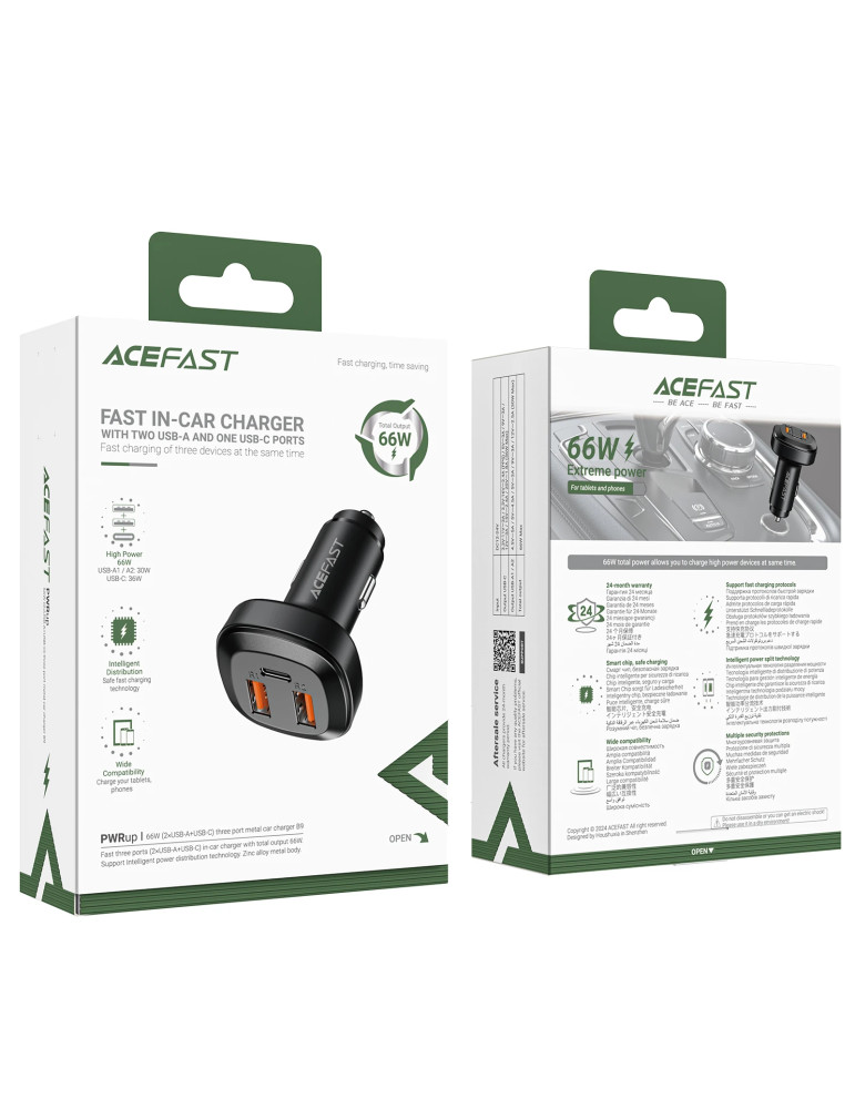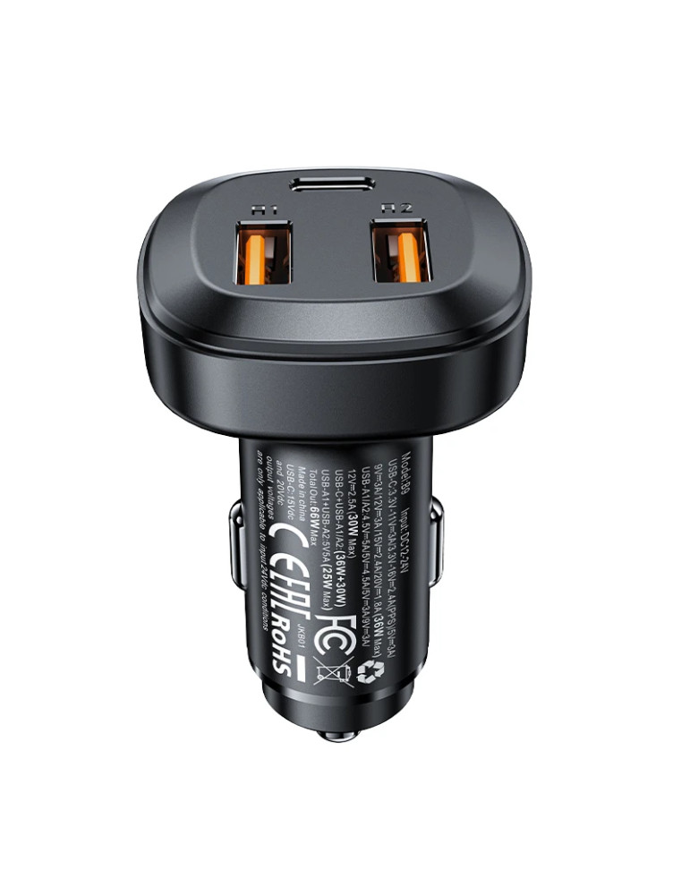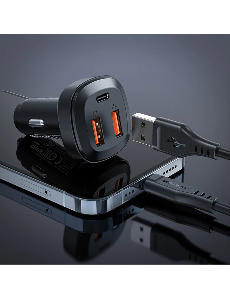 Зарядно за кола Acefast Fast Charger Car PD3.0 66W - B9 - USB-C x 1, USB-A x 2, Black - ACEFAST-B9-BK