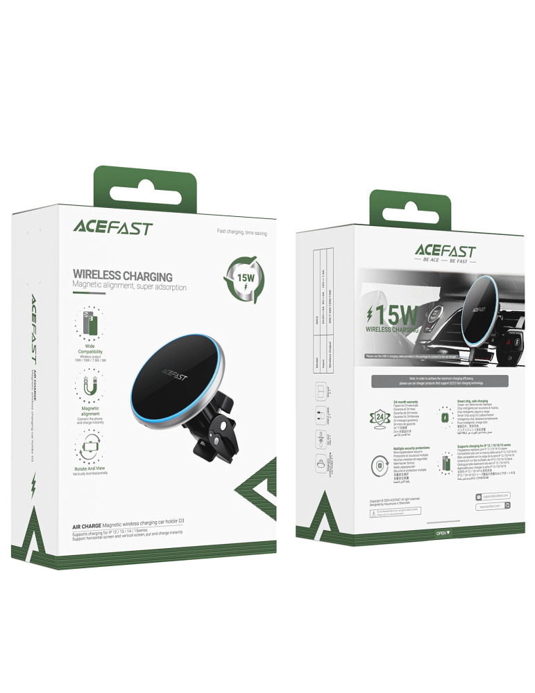 Стойка за телефон за кола Acefast Car phone holder - for Air vent, Wireless Magnetic Wireless Charging - D3 - Silver - ACEFAST-D3-BK