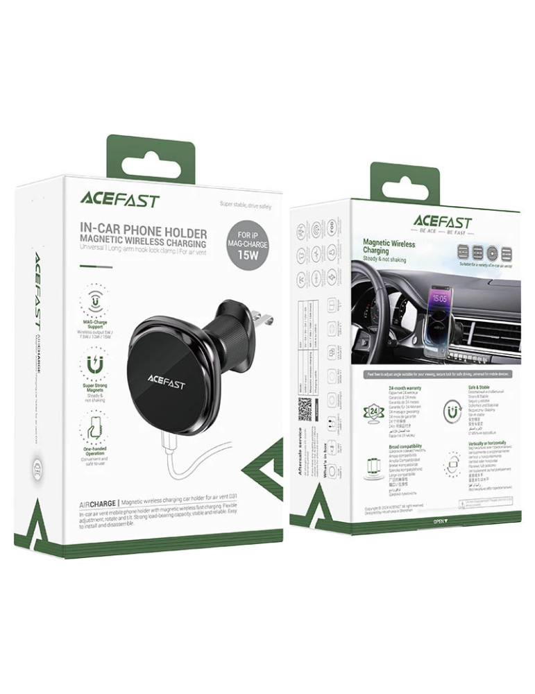 Стойка за телефон за кола Acefast Car phone holder - for Air vent, Wireless Magnetic Wireless Charging - D31 - Black - ACEFAST-D31-BK