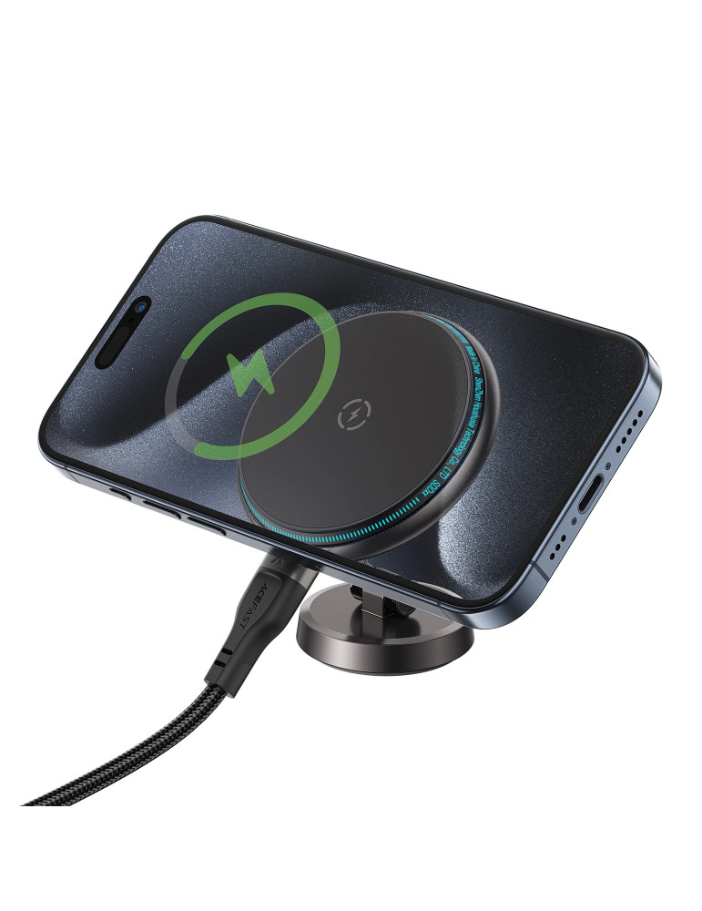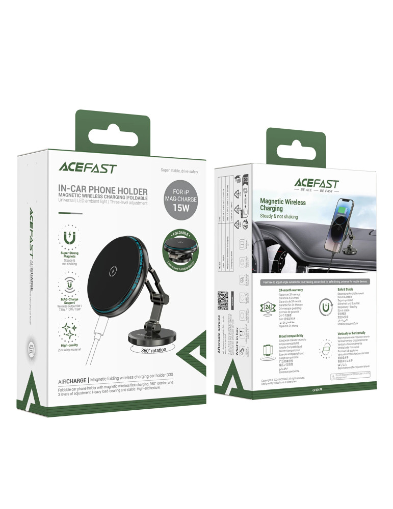 Зареждаща стойка за телефон за кола Acefast Car phone holder - MAG-Charging 15W, Metal, Magnetic Ring, 360 deg, Foldable - D30 - Black - ACEFAST-D30