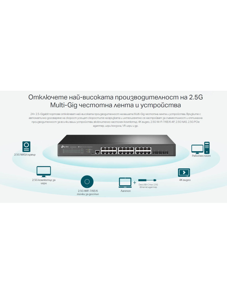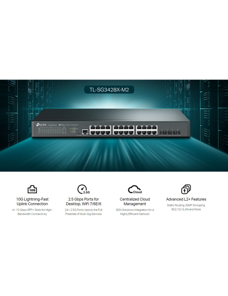 24-портов комутатор TP-Link TL-SG3428X-M2 JetStream 2.5GBASE-T L2 управляван с 4 10GE SFP слота - SG3428X-M2