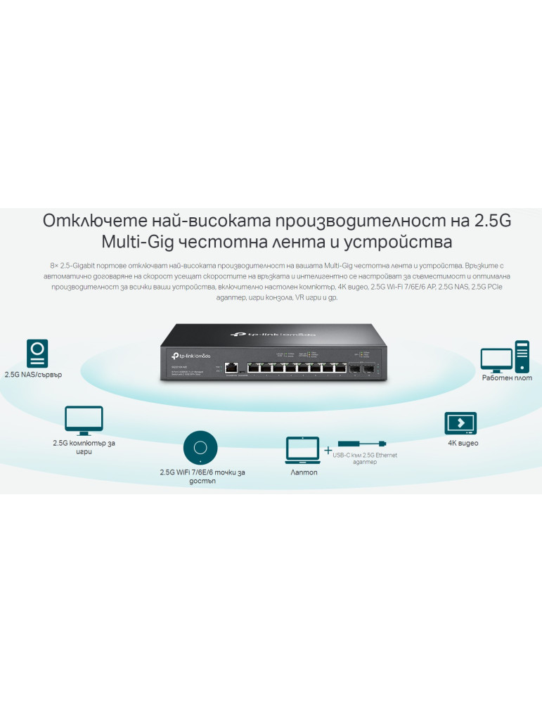 8-портов 2.5 Gbps L2 управляем комутатор TP-Link Omada SG3210X-M2