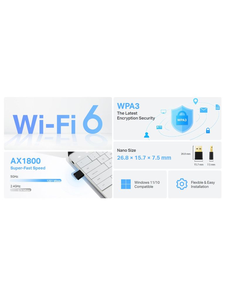 Безжичен USB 2-лентов адаптер TP-Link Archer TX20U Nano AX1800