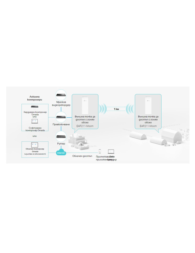 ВъншнаТочка за достъп TP-LINK EAP211-Bridge KIT Indoor/Outdoor