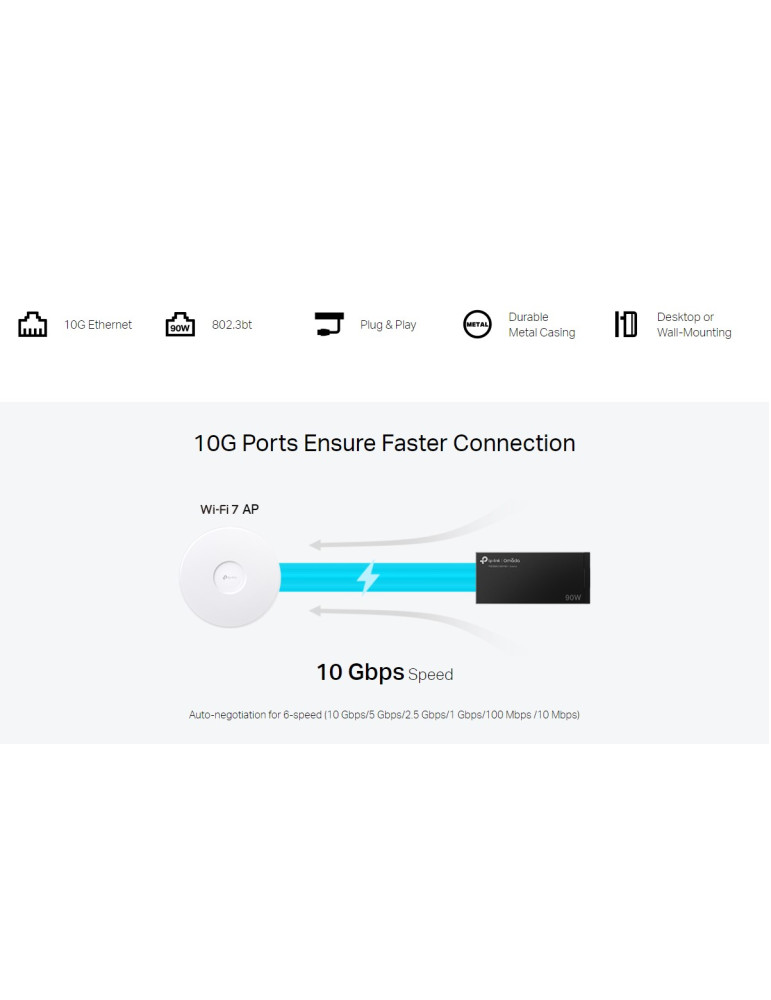 | Интерфейс | 1× 10 Gbps/5 Gbps/2.5 Gbps/1 Gbps/100 Mbps/10 Mbps RJ45 power+data-out port (Max. 90 W) |