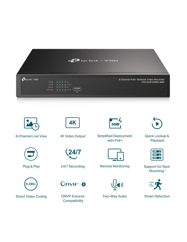 Мрежови видео рекордер TP-Link VIGI NVR1008H-8MP 8-канален PoE
