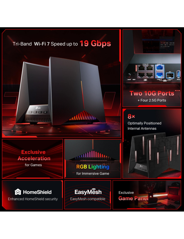 Рутер Wi-Fi 7 TP-Link Archer GE800 BE19000 3-лентов