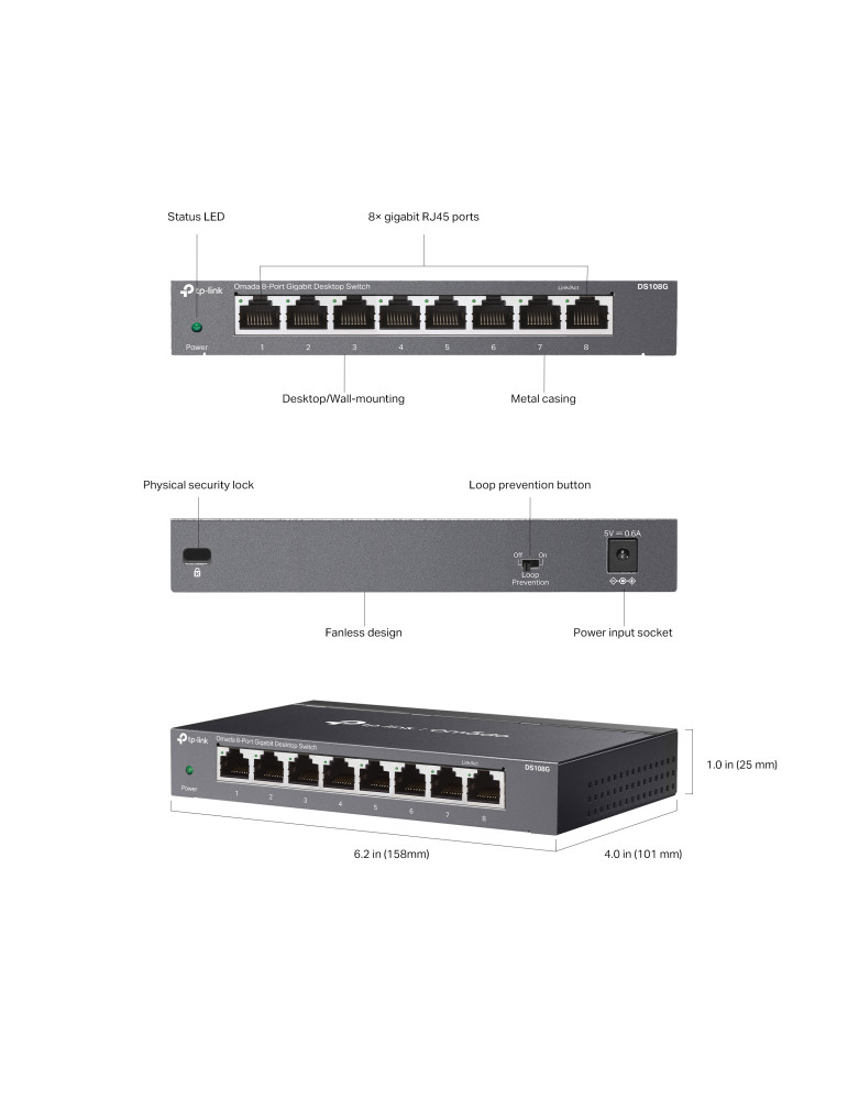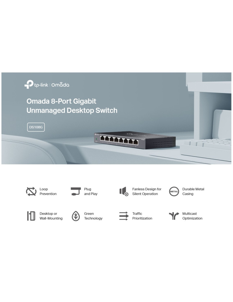 8-портов гигабитов неуправляем настолен комутатор TP-Link DS108G