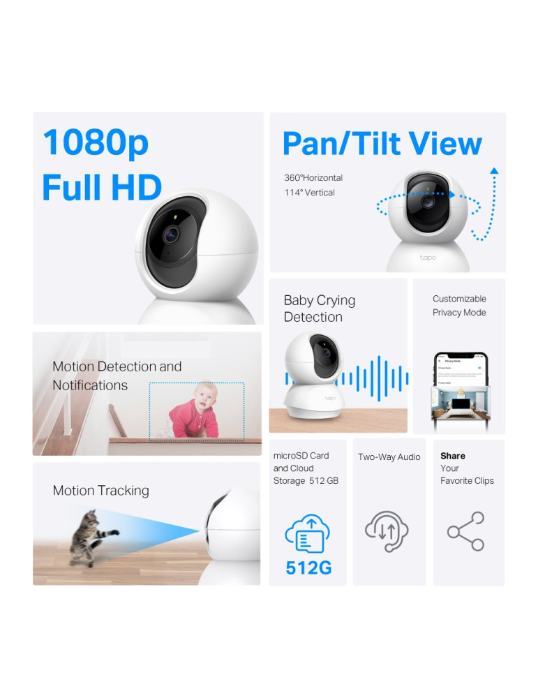 Wi-Fi Pan/Tilt камера за наблюдение TP-Link Tapo C200P2