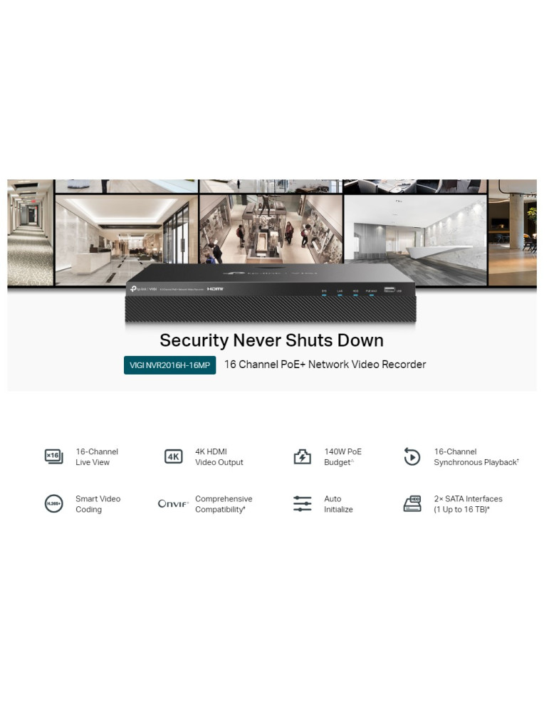 16-канален NVR TP-Link VIGI NVR2016H-16MP