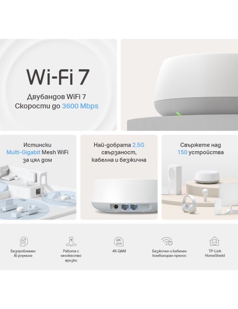 Безжична Wi-fi 7 Mesh система TP-Link Deco BE25(2-pack) BE3600