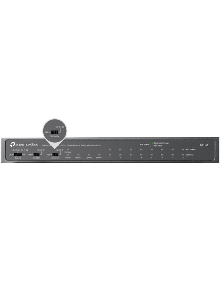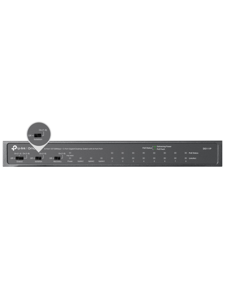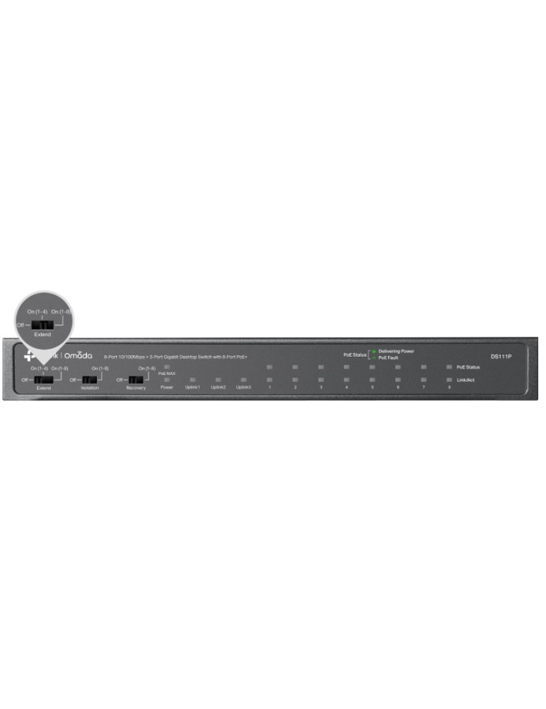 Комутатор неуправляем TP-Link Omada DS111P 8-порта 10/100Mbps 3-порта Gigabit с 8-порта PoE
