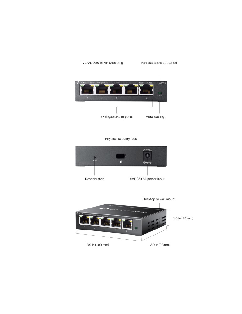 | Интерфейс | 5× 10/100/1000 Mbps, Auto-Negotiation, Auto-MDI/MDIX Ports |