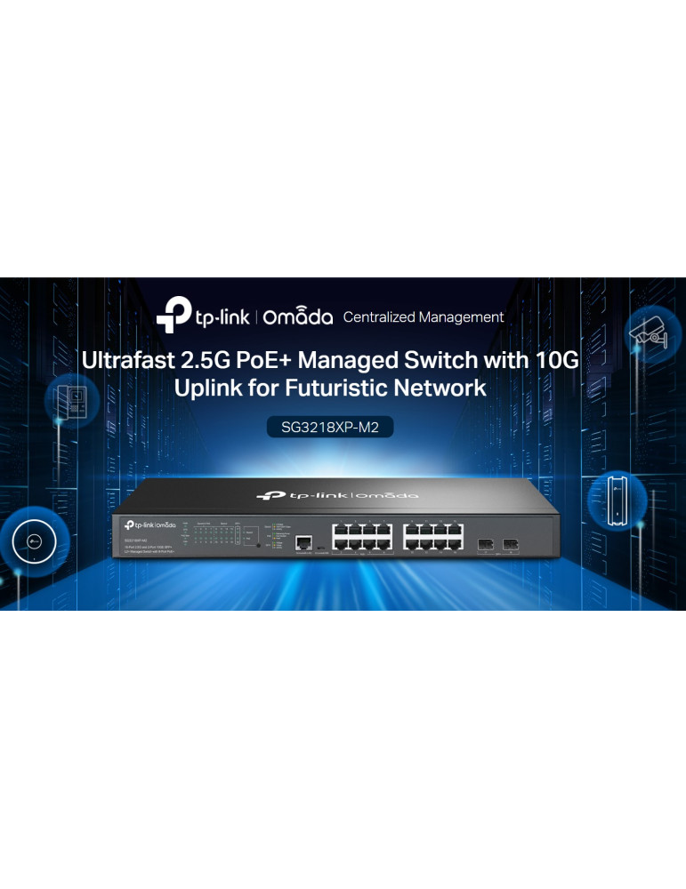 16-портов комутатор TP-Link Omada SG3218XP-M2 2.5G и 2-порта 10GE SFP L2 управляем с 8-порта PoE