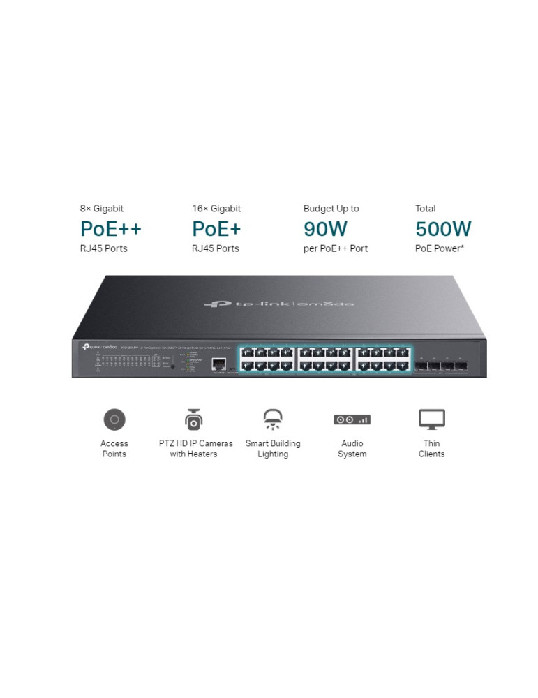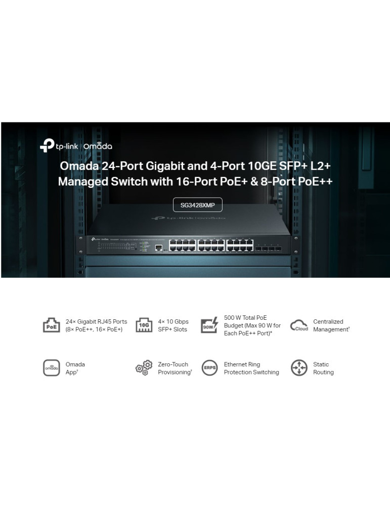 24-портов гигабитов и 4-портов 10GE SFP L2 управляван комутатор TP Link Omada SG3428XMPP с 16-портов PoE и 8-портов PoE