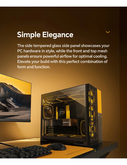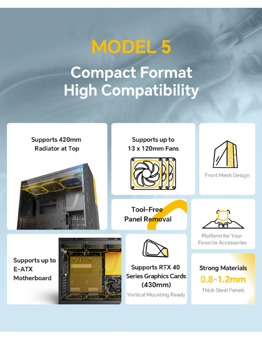 Кутия за компютър Geometric Future Model 5 Vent Black/Yellow, 5 x 140 mm aRGB fans included, EATX - GEO-M5VF-BY