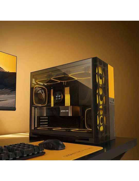 | ДОПЪЛНИТЕЛНИ | 0.8-1.2mm thick steel for entire chassis 5 x 140 mm ARGB fans Pre-Installed (Bottom and Front Side reversed) Fun yet functional built-in display platform Optimized mesh panel for maximum airflow performance Supports 420mm radiator, E-ATX and 430mm GPUs Supports up to 13 x 120mm fans Unique location for the PSU |