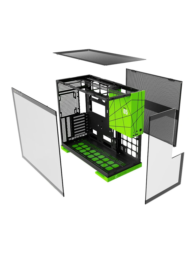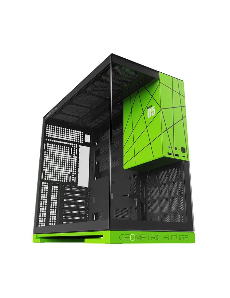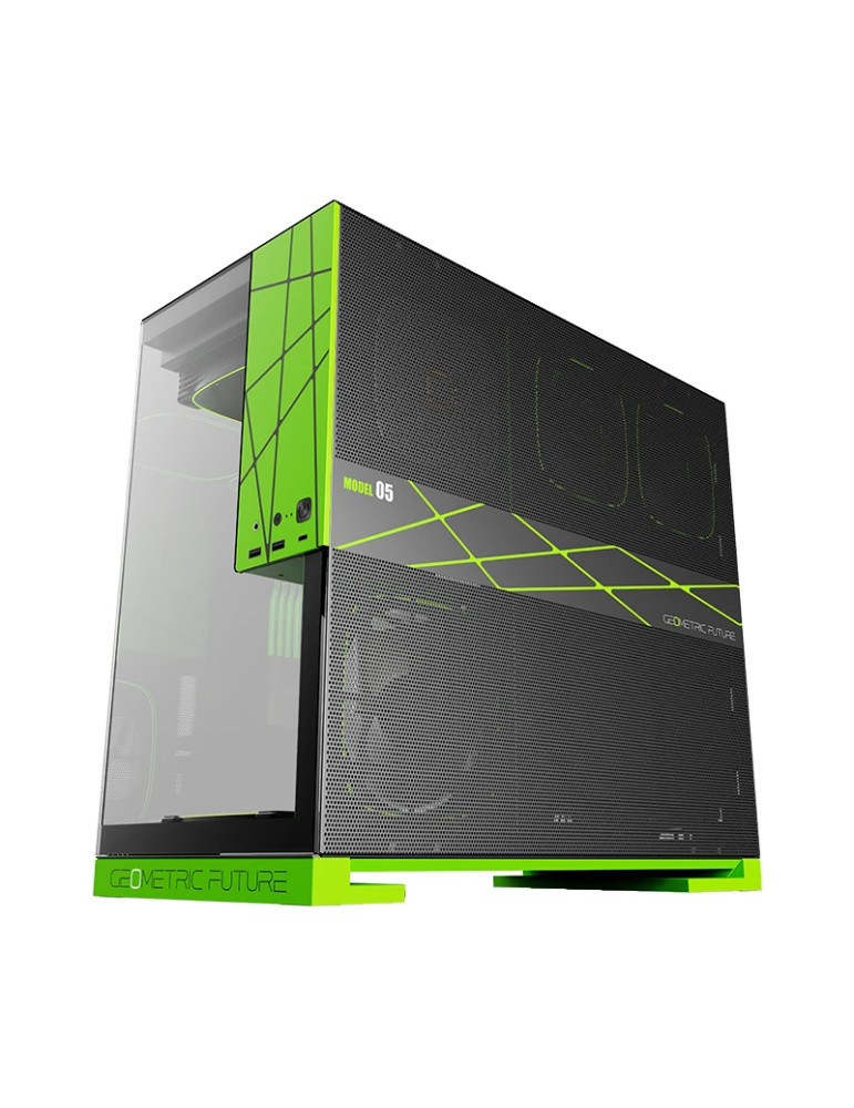Кутия за компютър Geometric Future Model 5 Black/Green, NVIDIA style limited edition, 5 x 140 mm aRGB fans included, EATX - GEO-M5F-BNV