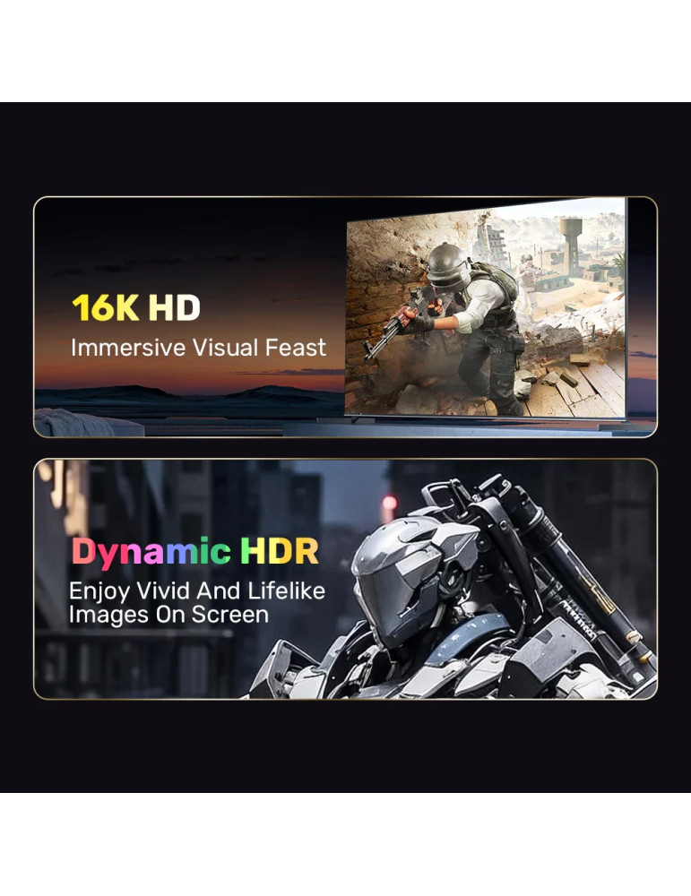 | ДОПЪЛНИТЕЛНИ | 80Gbps bandwidth, HBR3, DSC 1.2a, Dynamic HDR, MTS multi-stream transmission Fully compatible with a wide range of monitors including Odyssey G8, G9, CHG90, CRG9, BenQ, iiyama, Alienware and others Supports DP, DP++, DisplayPort++, as well as G-Sync, Free-Sync and Adaptive-Sync technologies Supports high resolutions up to 16K |