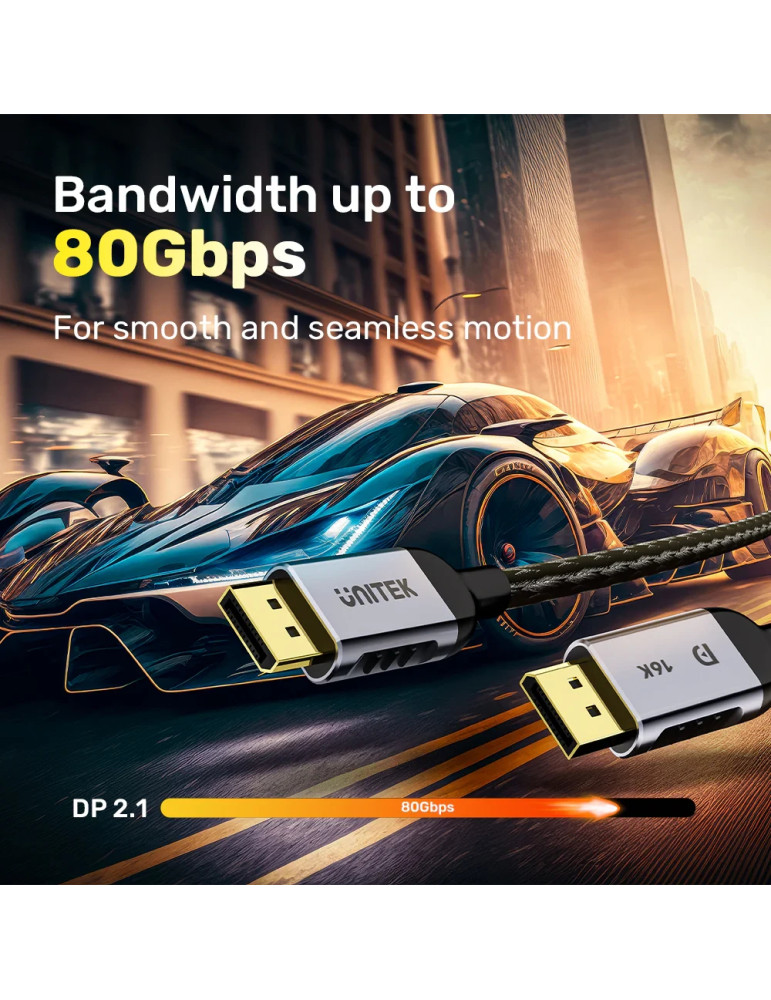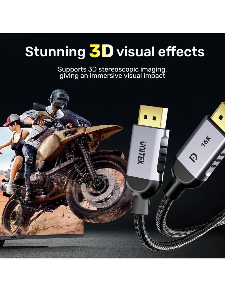 Кабел Unitek Display Port 2.1 DP M / M - 8K@120Hz, Black - C1626GY-2M