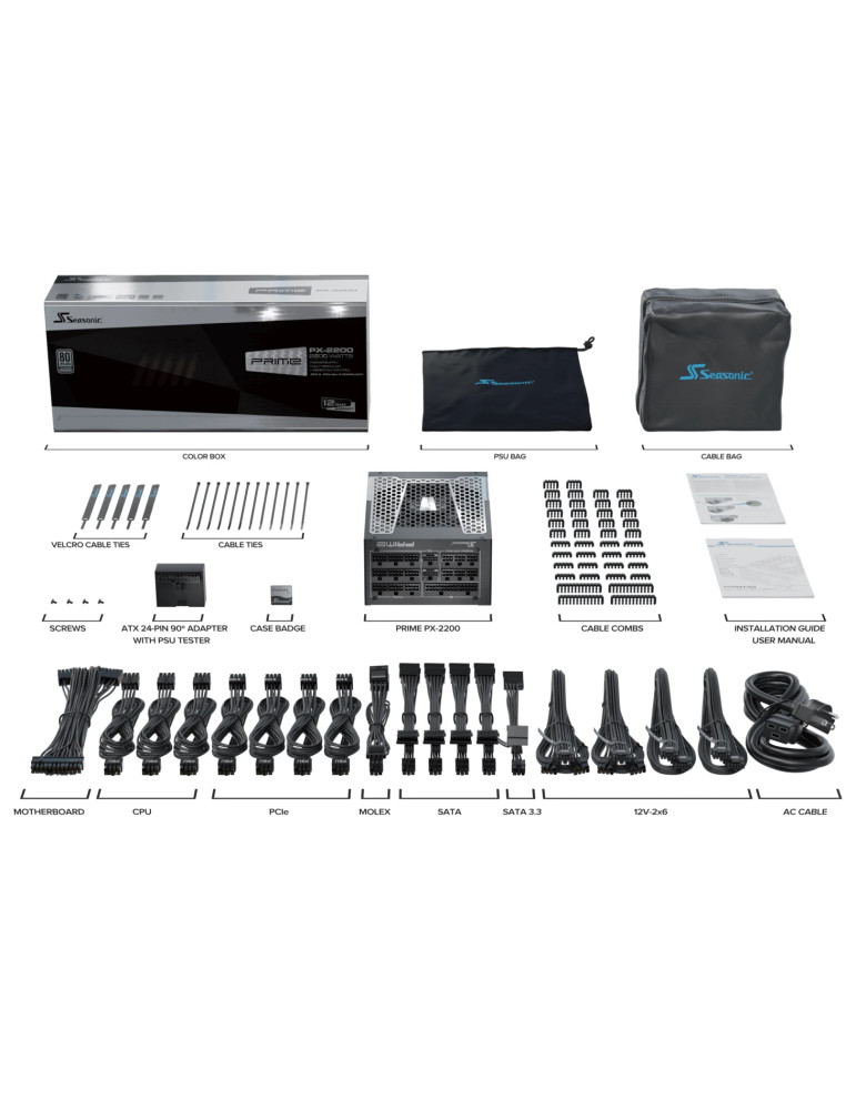 Захранване Seasonic PRIME PX-2200 PSU ATX 3.1 2200W Platinum PCIe Gen 5 - PRIME-PX-2200-ATX30