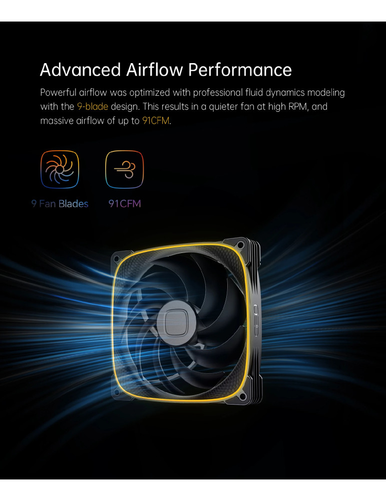| ДРУГИ | Compatible with Addressable RGB motherboard light sync Covered with aerodynamically streamlined dragon scale particles Elegant and chic fine circle light effect Fine-tuned global dynamic balance for fan Four-corner shockproof rubber pad High-performance quite fan Integrated PWM smart control |