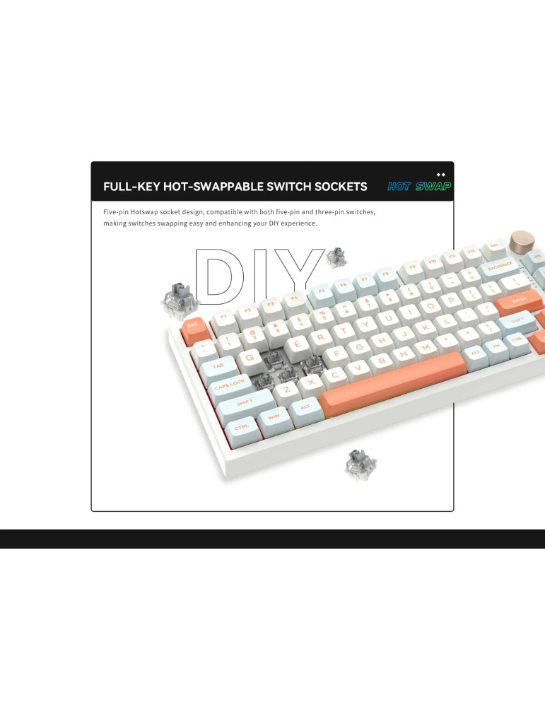 | ДОПЪЛНИТЕЛНИ | 16.8M RGB Backlight Full-Key Hot-Swappable Switch Sockets Gasket structure for noise reduction Metal Volume Knob Poron Foam |