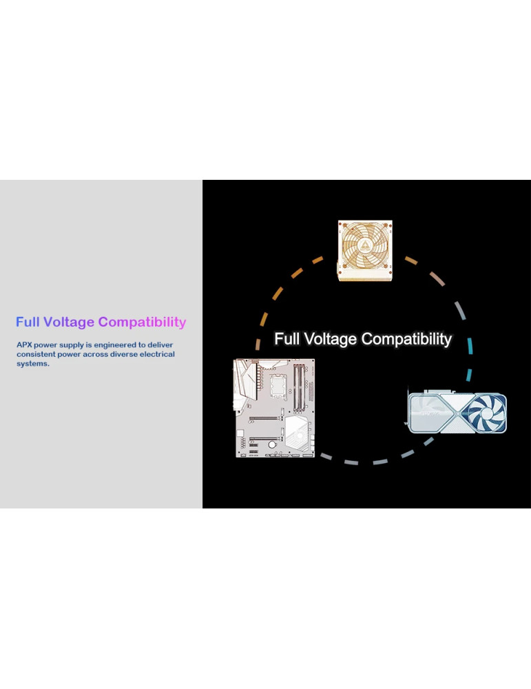 | ДРУГИ | Full Voltage Compatibility Protections: OPP / OVP / UVP / SCP / OCP / OTP Unleashes Precision Power with Dominance 12V Rail ; DC-to-DC Technology Whisper-Quiet 120mm Fan |
