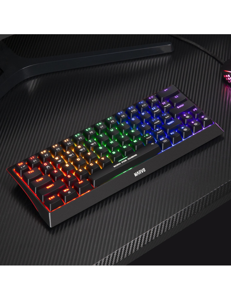 Bluetooth механична геймърска клавиатура Marvo Hecate 61WR Black KG962W-R, Bluetooth 5.0, 63 keys - MARVO-KG962W-R