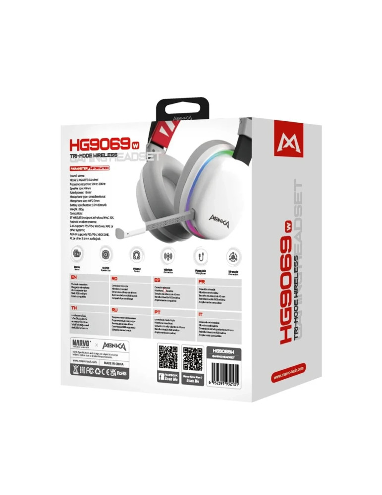 Bluetooth геймърски слушалки Marvo Monka Echo RS, Bluetooth, 2.4G, RGB - MARVO-HG9070W