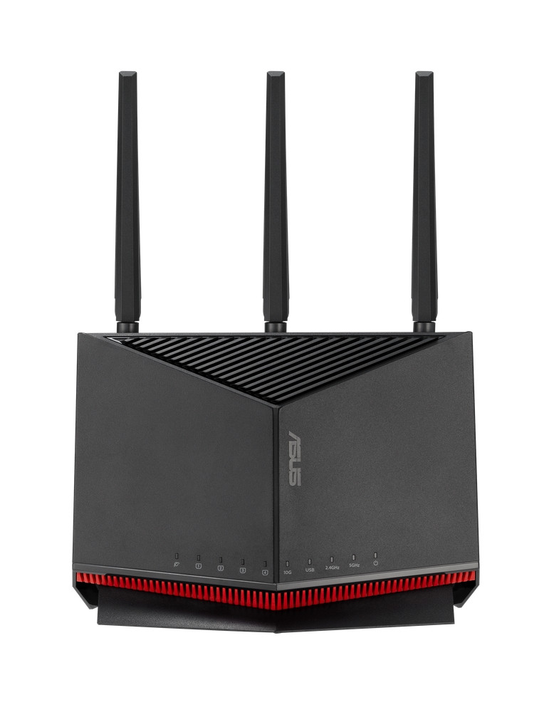 Рутер Asus Gaming Wireless Router, RT-BE86U, BE6800, Dual-Band, Quad-Core 2.6GHz CPU, 256MB/1GB Flash/RAM, 4K-QAM, MLO, 10G port, 2.5G quad-port, AiProtection Pro, Adaptive QoS, VPN Fusion, Instant Guard, IPTV, OFDMA, MU-MIMO, UTF-8 SSID, AiMesh, Black - 90IG08W0-MO9A0V