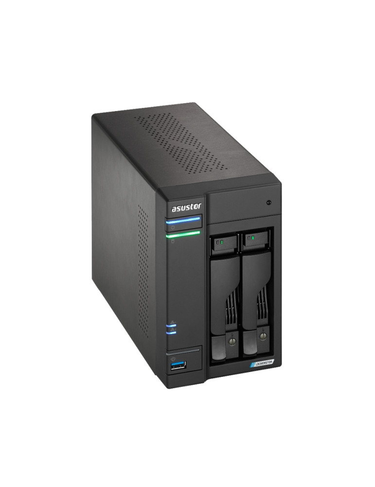 Мрежови сториджи Asustor Lockerstor AS6702T, 2 Bay NAS, Intel Jasper Lake 4C 2.0 GHz, 4GB DDR4 SODIMM, M.2 NVMe x4 slots (Diskless), USB 3.2 Gen 2x2, Dual 2.5GbE Ports, WOW (Wake on WAN), AES-NI hardware encryption, MyArchive (support btrfs and snapshot), SSD Caching