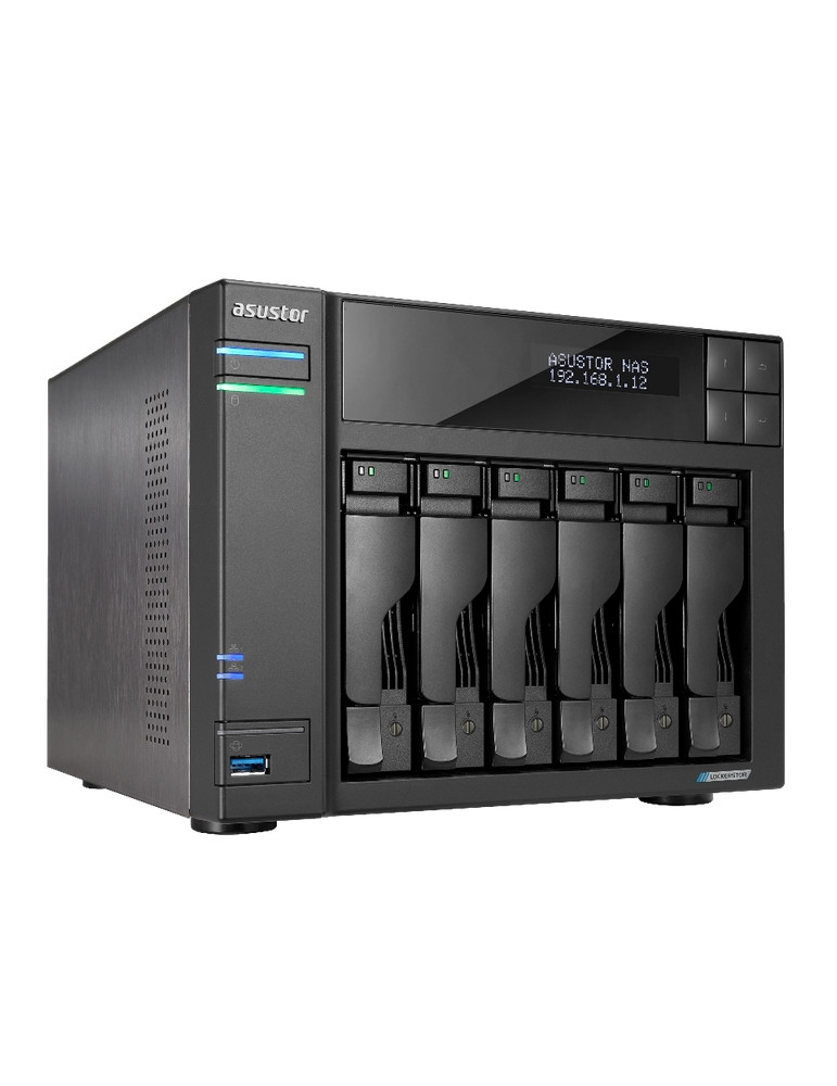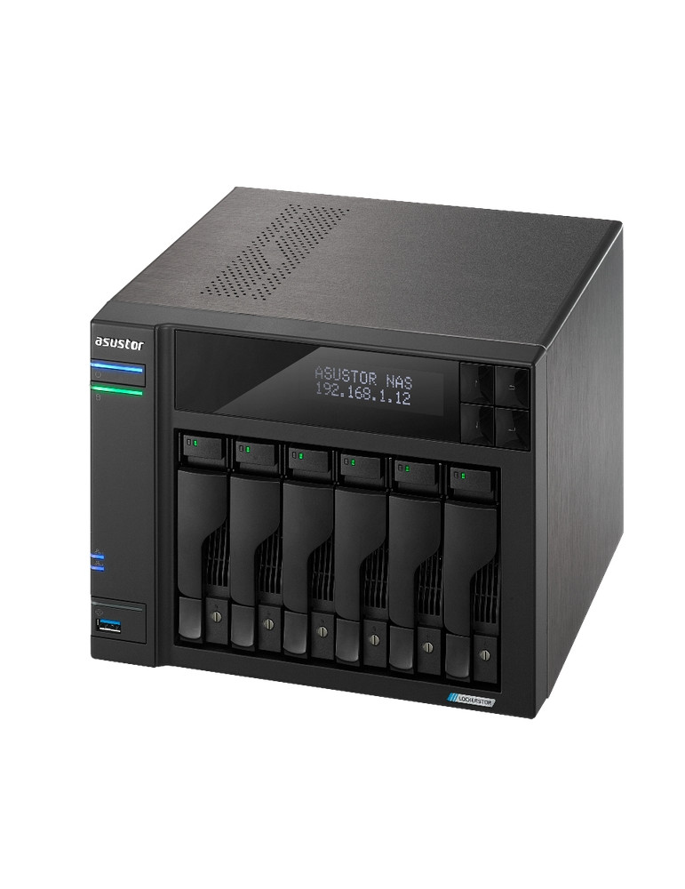 Мрежови сториджи Asustor Lockerstor AS6706, 6 Bay NAS, Intel Jasper Lake Quad-Core 2.0GHz, 8GB RAM DDR4, 2.5GbEx2, M.2 SSD Slots x 4 (Diskless), USB 3.2 Gen 2x2, Toolless installation, with hot-swappable tray, hardware encryption, MyArchive, EZ connect, EZ Sync, Black - AS6706TКолички за пазаруване