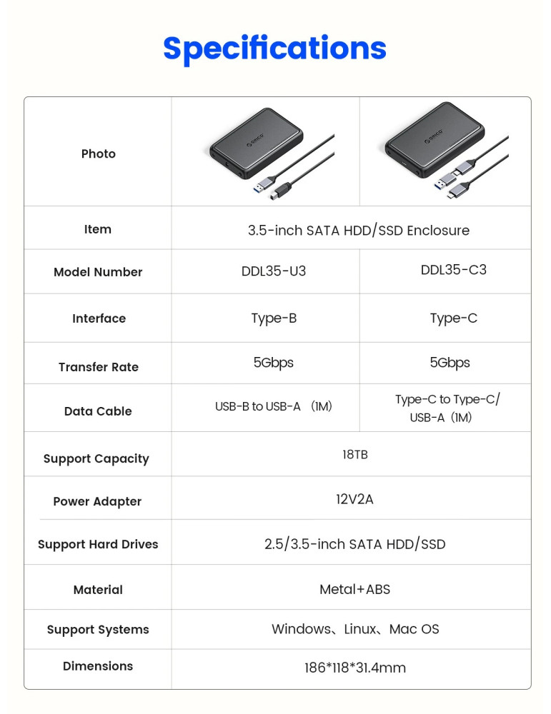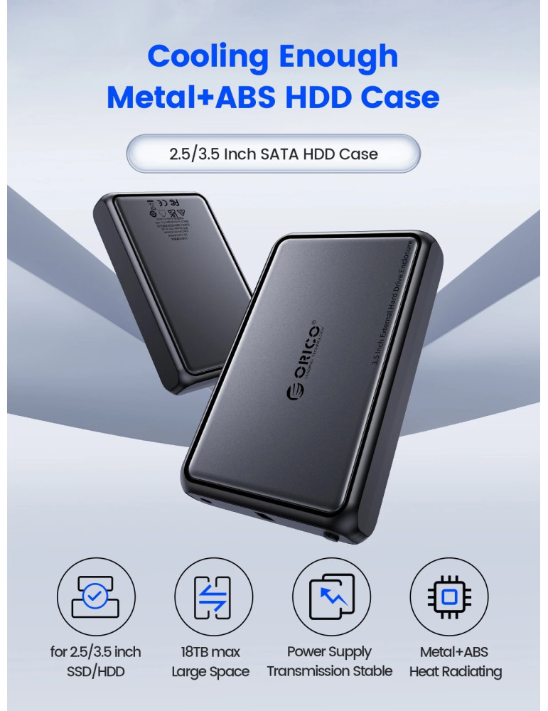 Външна кутия за диск Orico Storage Case, 3.5" USB-A black - DDL35-U3-EU-BK - DDL35-U3-EU-BK-BP-HW