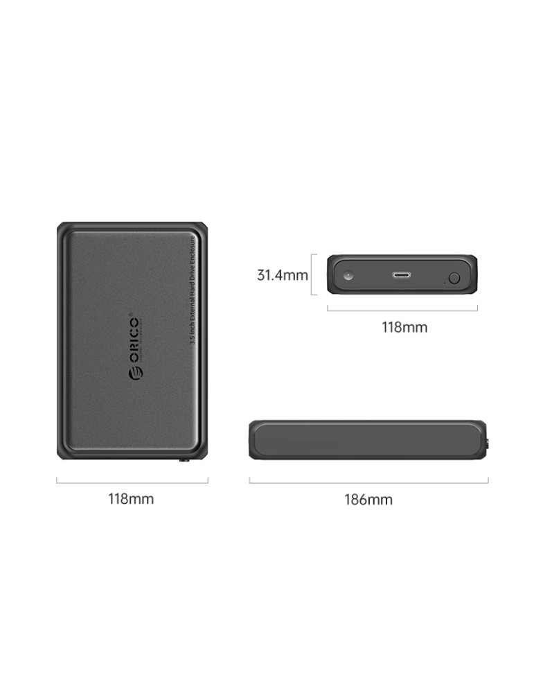 Външна кутия за диск Orico Storage Case, 3.5" USB-C black - DDL35-C3-EU-BK - DDL35-C3-EU-BK-BP