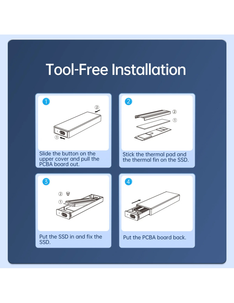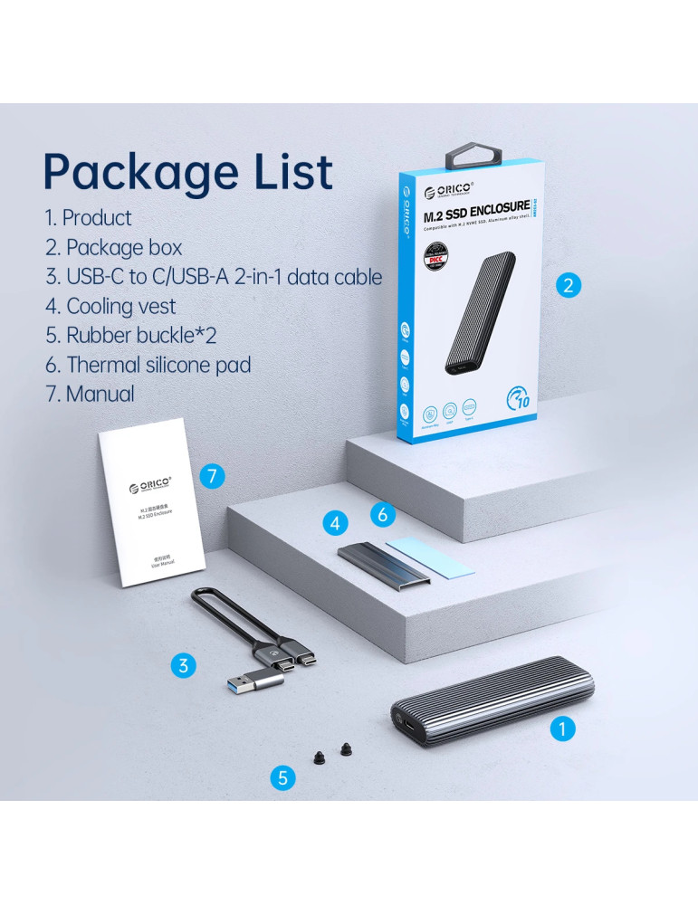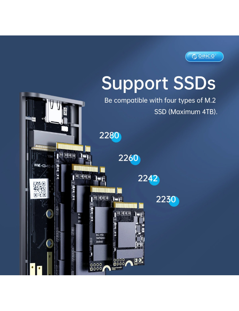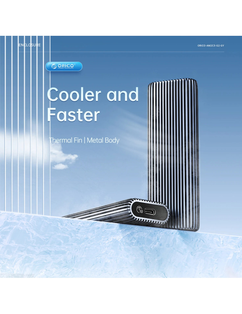 Външна кутия за диск Orico Storage Case, M.2 NVMe M-key 10 Gbps, Aluminium - AM2C3-G2-GY - AM2C3-G2-GY-BP